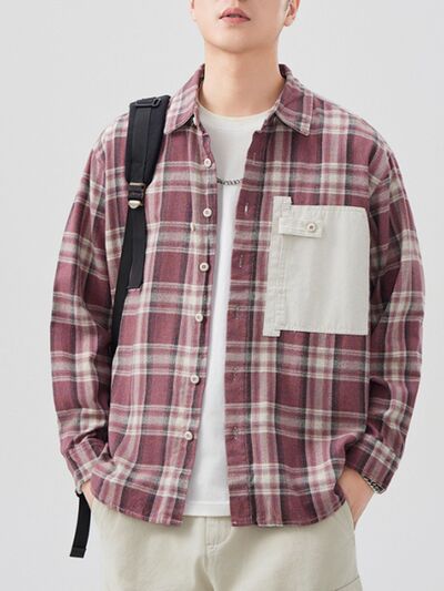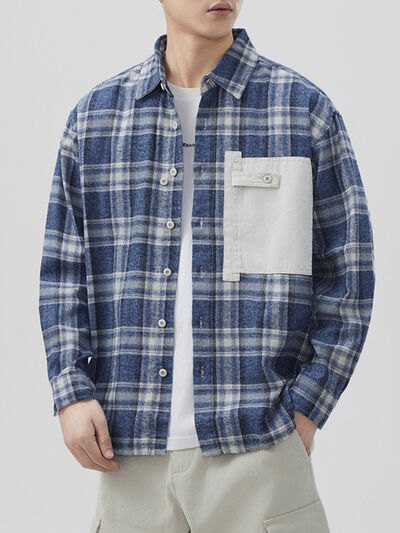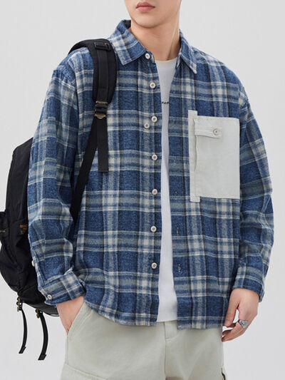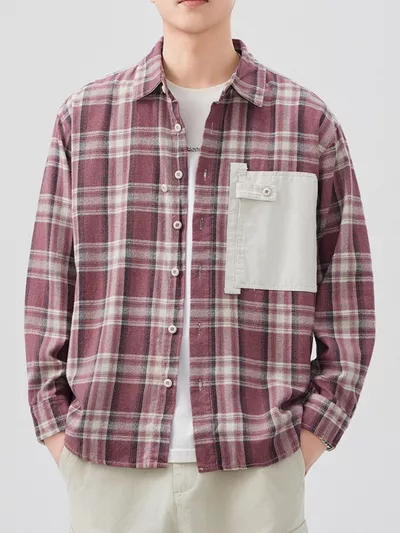Men's Plus Size Plaid Button Up Long Sleeve Shirt