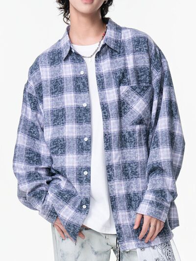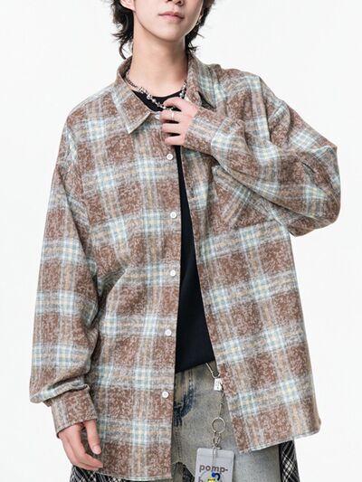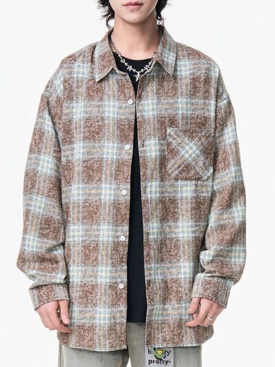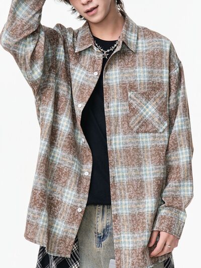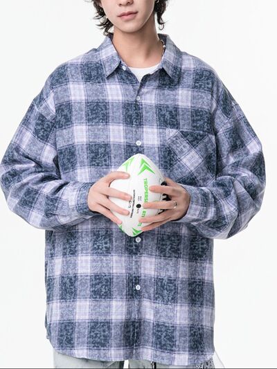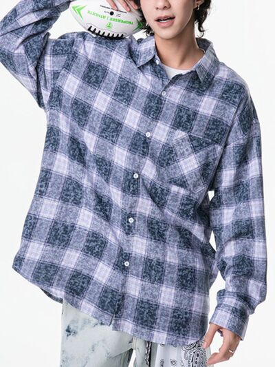 Men's Plus Size Plaid Button Up Long Sleeve Shirt