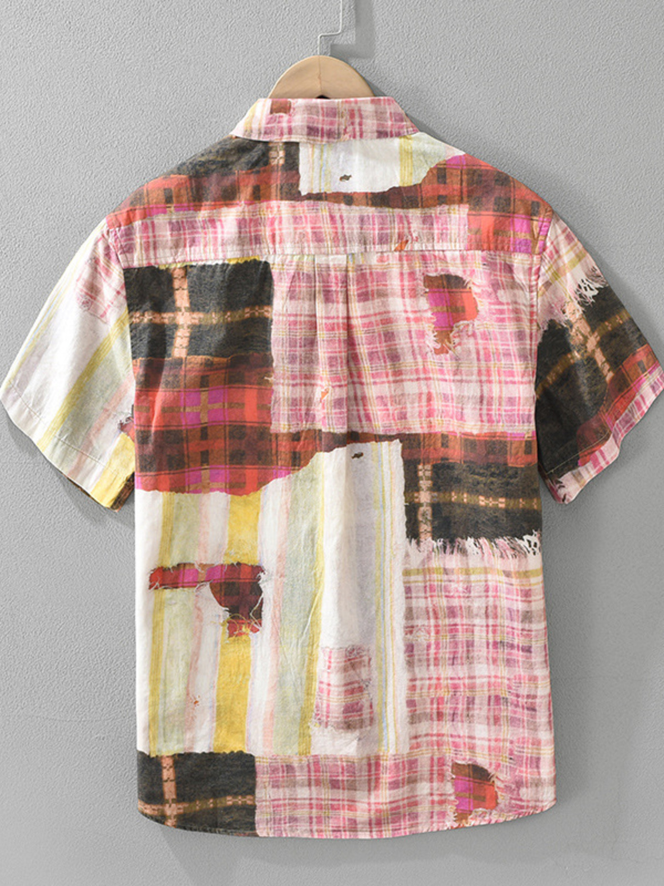 Men's Plus Size Plaid Button Up Short Sleeve Shirt