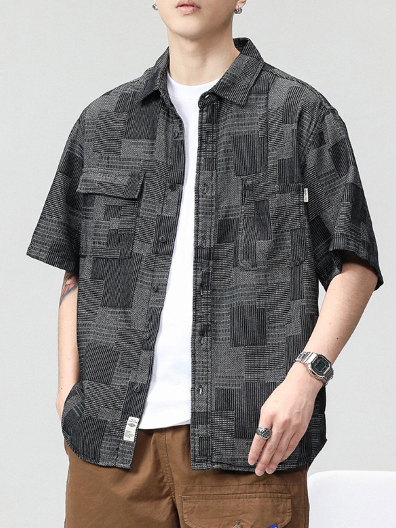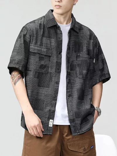 Men's Plus Size Plaid Short Sleeve Shirt