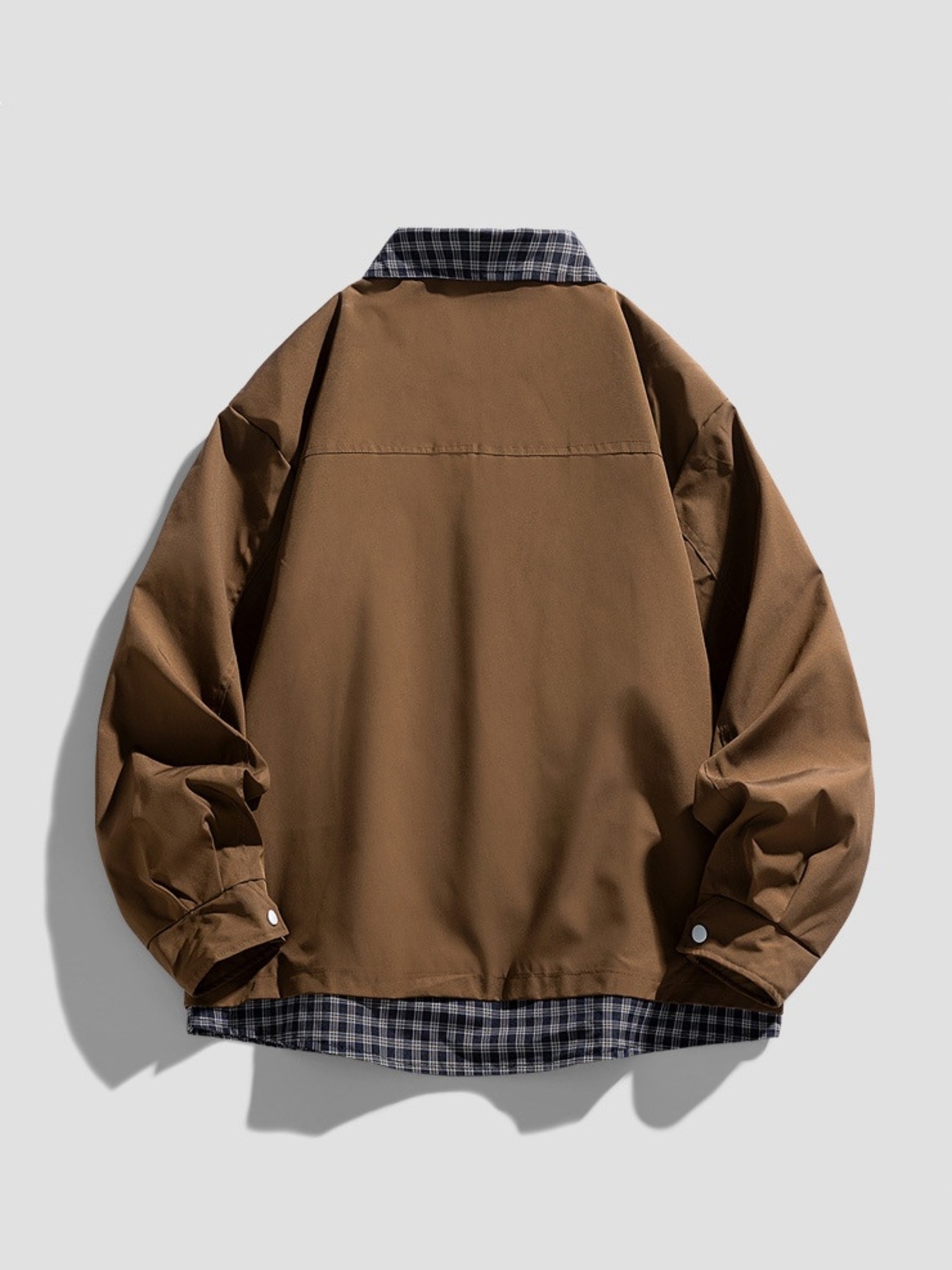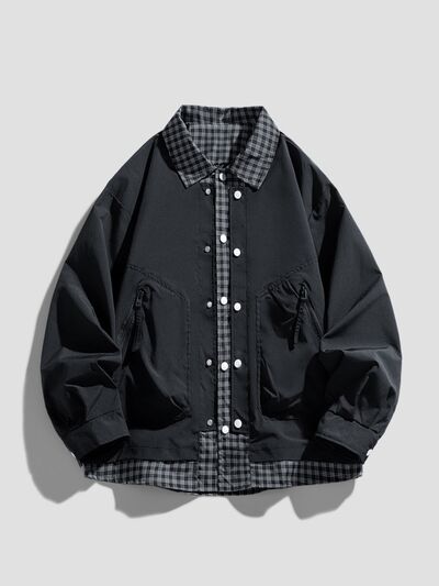 Men's Plus Size Plaid Trim Snap Down Casual Jacket