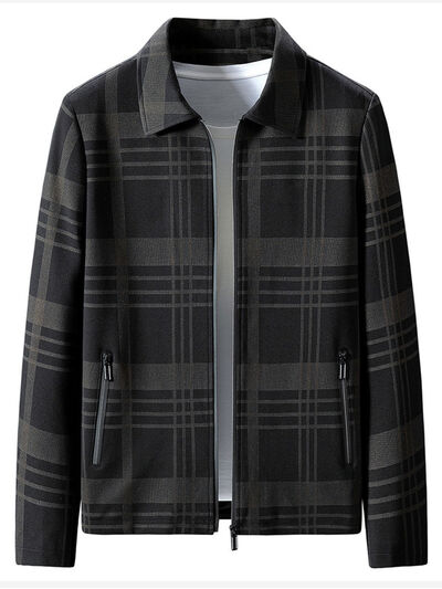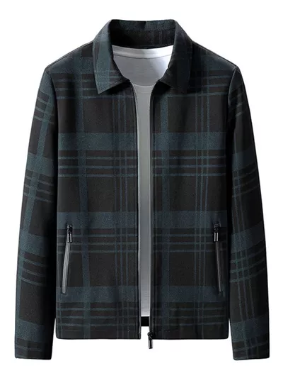 Men's Plus Size Plaid Zip Up Jacket