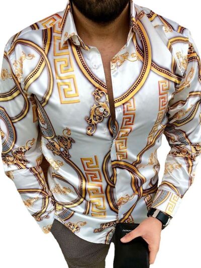 Men's Plus Size Printed Button Up Long Sleeve Shirt