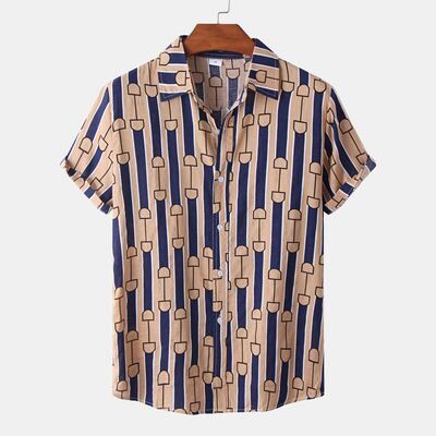 Men's Plus Size Printed Button Up Short Sleeve Shirt