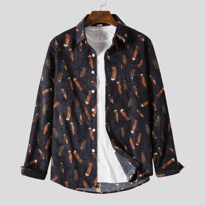 Men's Plus Size Printed Casual Button-Up Shirt