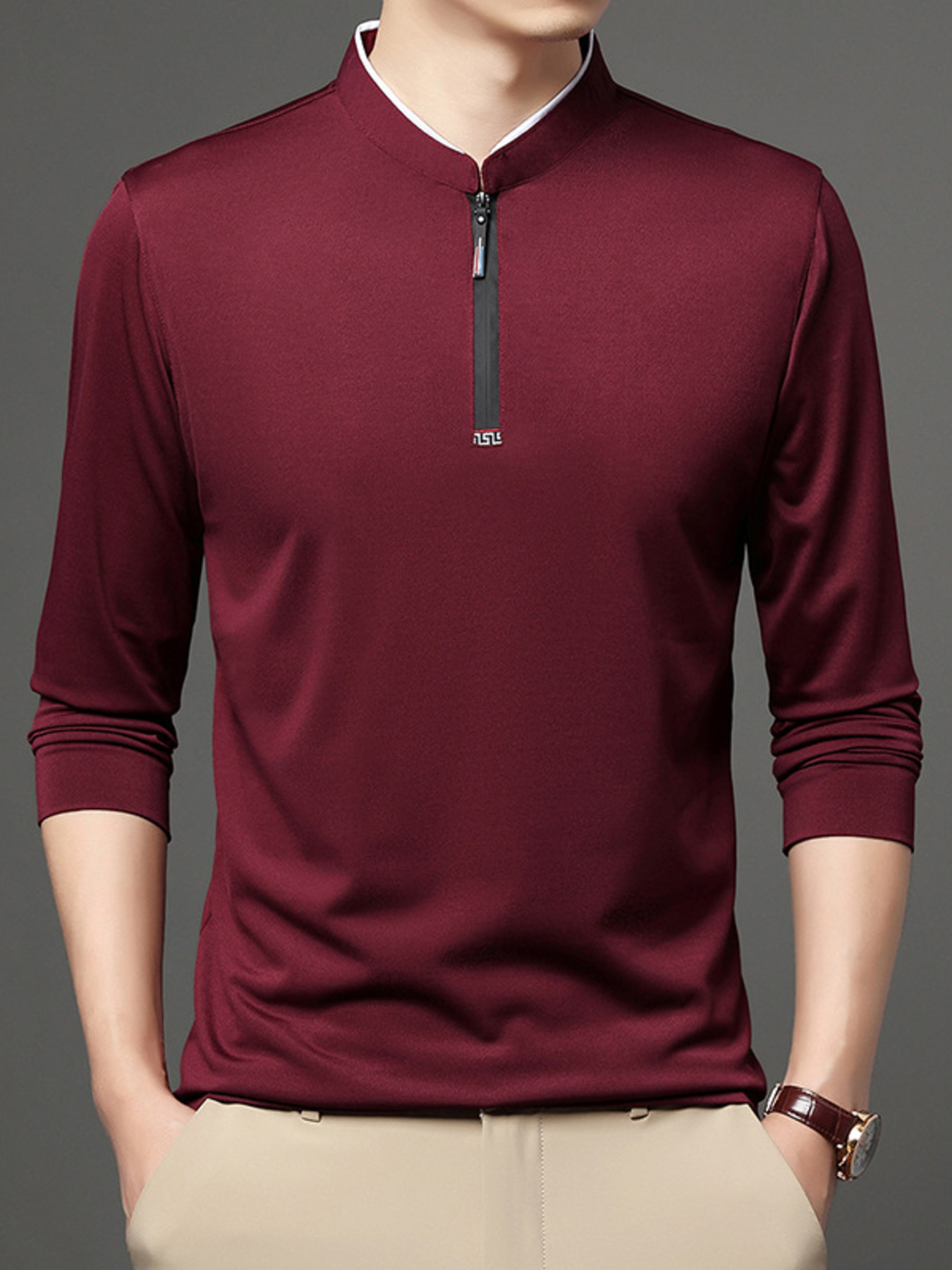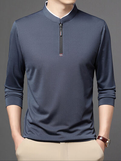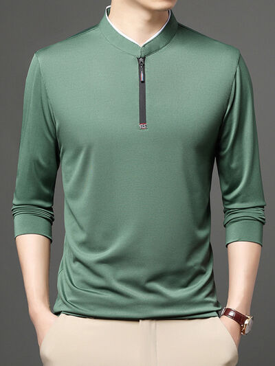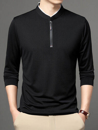 Men's Plus Size Quarter Zip Long Sleeve Top