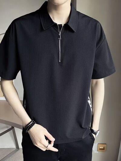 Men's Plus Size Quarter Zip Short Sleeve Polo