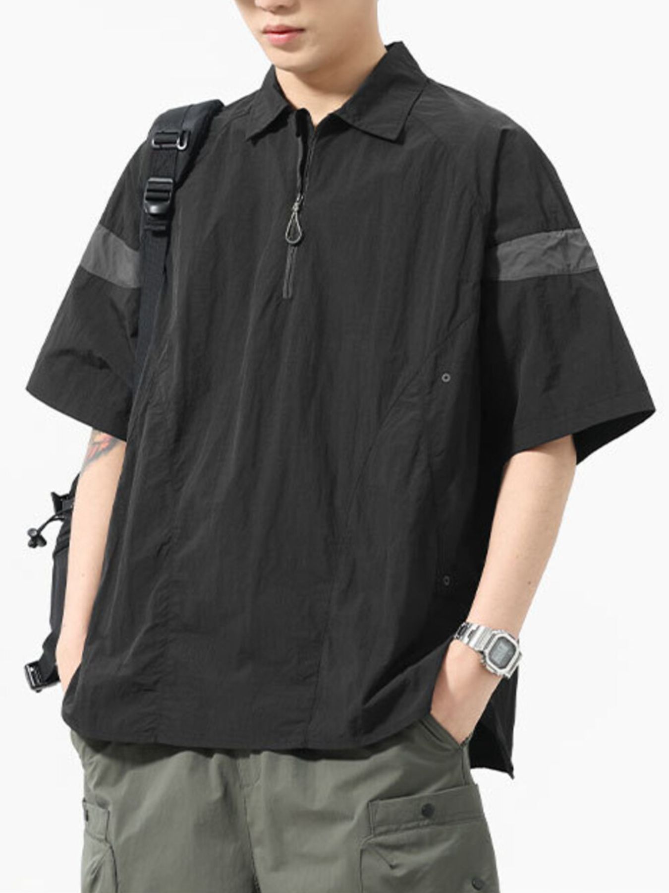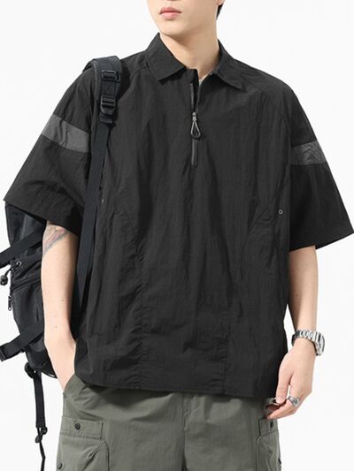 Men's Plus Size Quarter Zip Short Sleeve Polo