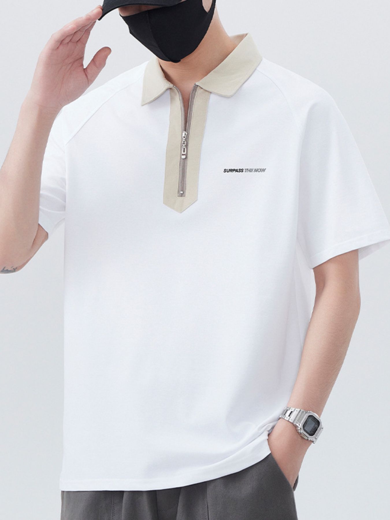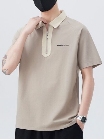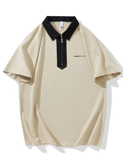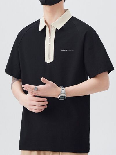Men's Plus Size Quarter Zip Short Sleeve Polo