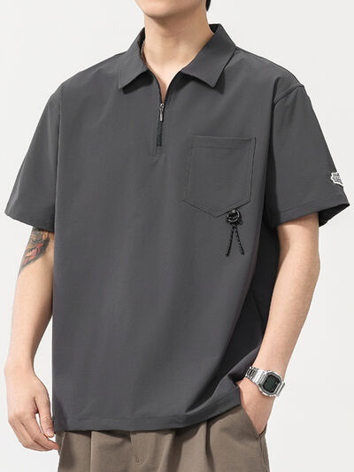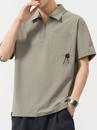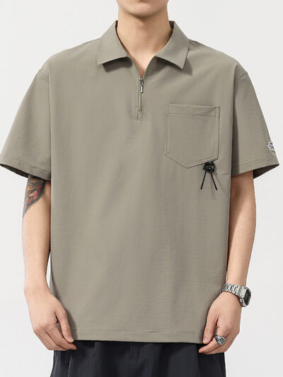 Men's Plus Size Quarter Zip Short Sleeve Polo