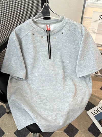 Men's Plus Size Quarter-Zip Short Sleeve T-Shirt