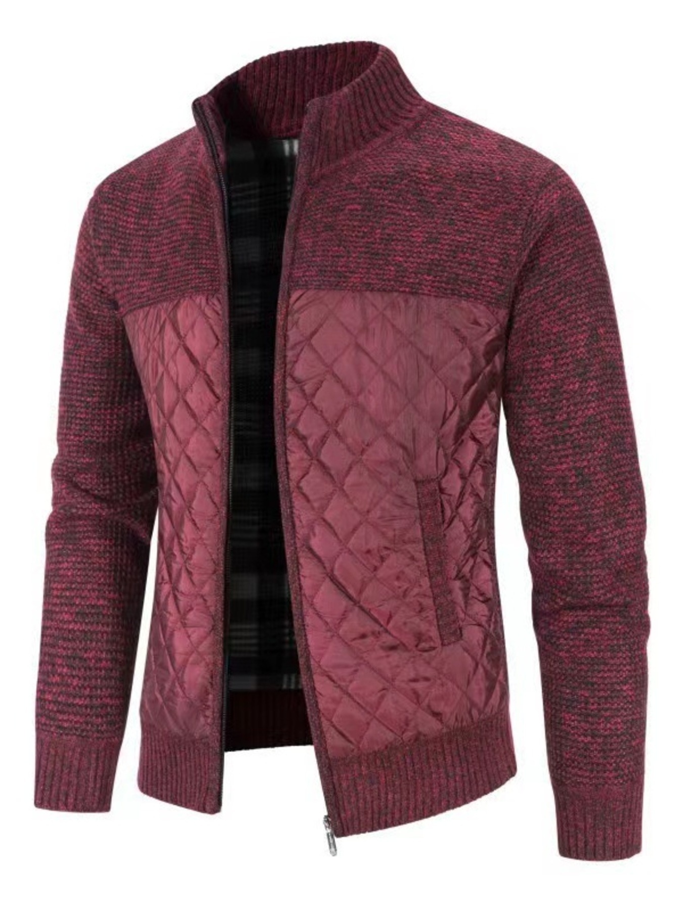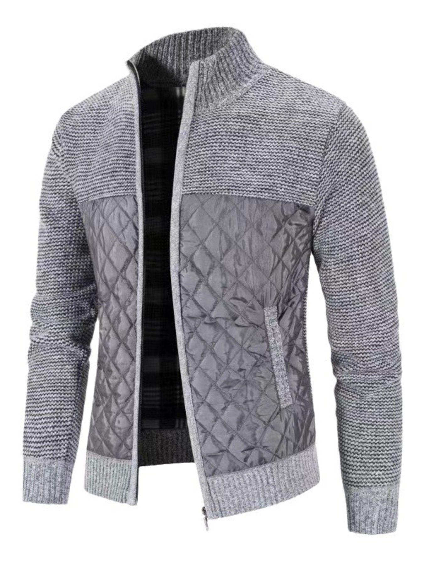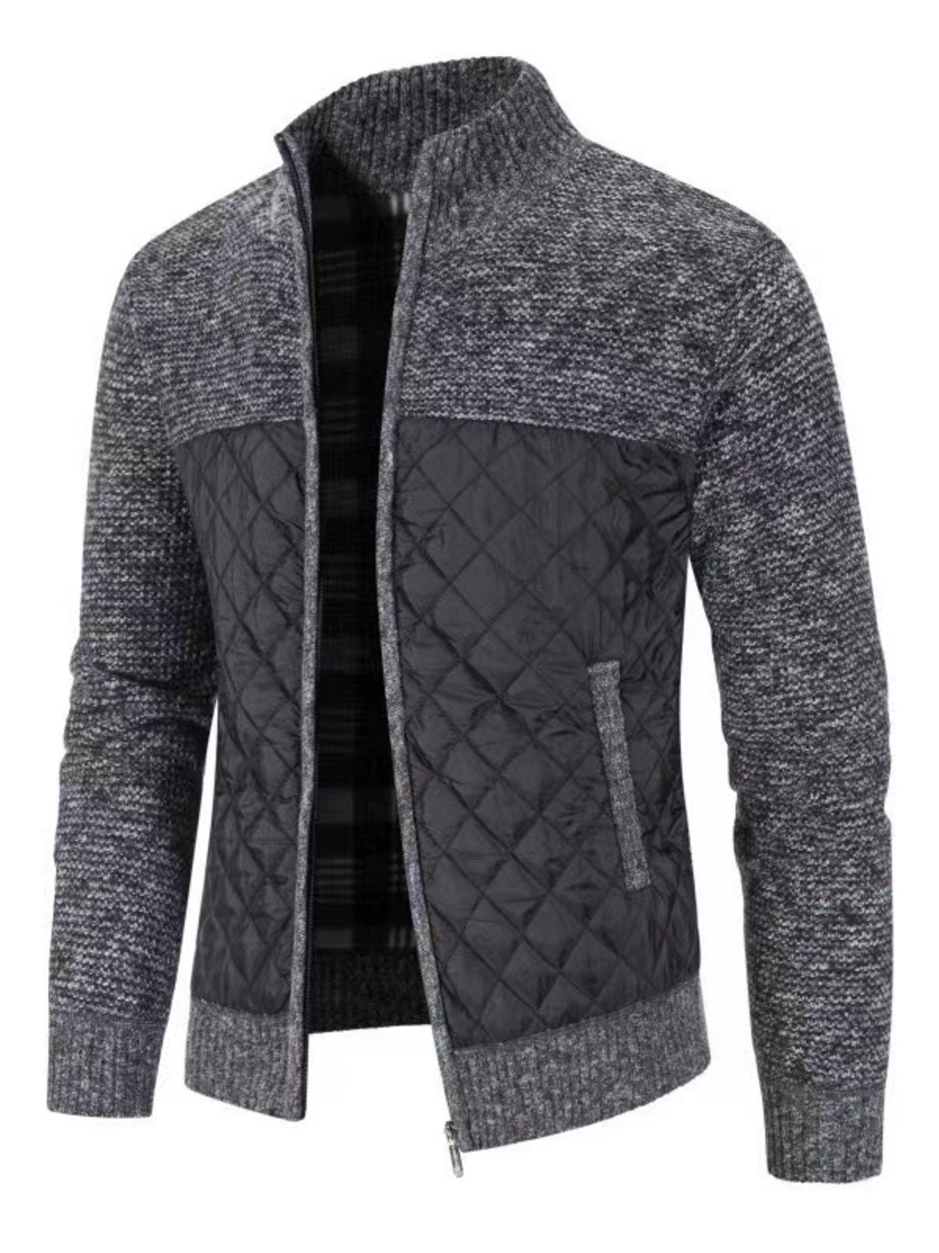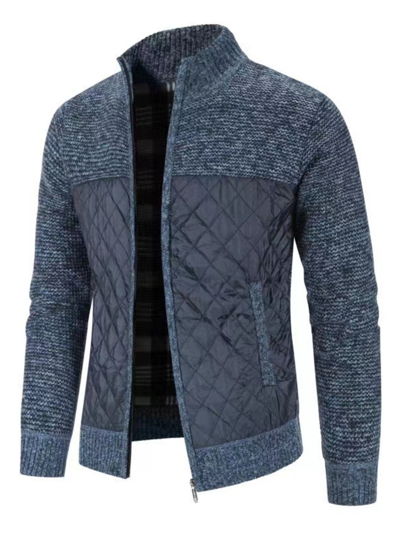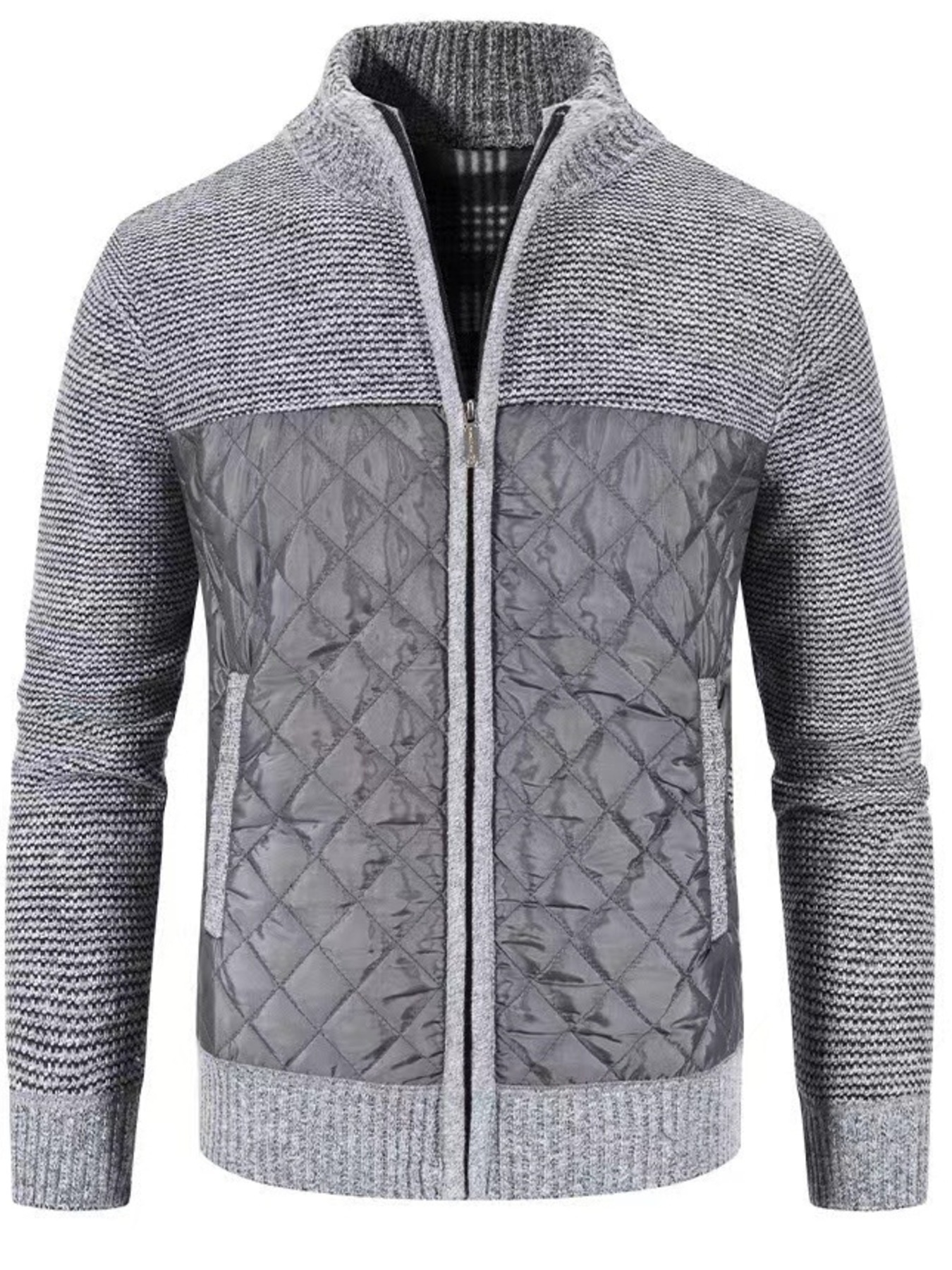 Men's Plus Size Quilted Panel Zip-Up Sweater Cardigan