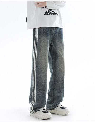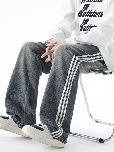 Men's Plus Size Retro Wide Leg Side Stripe Jeans