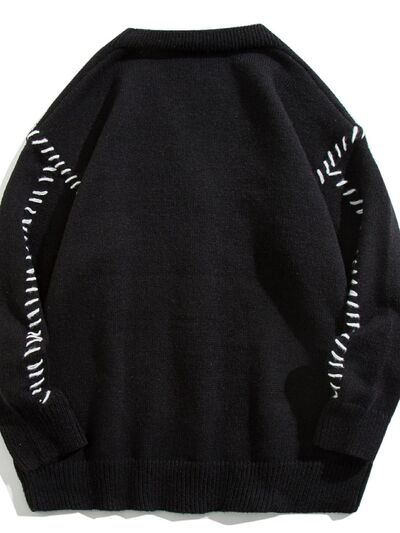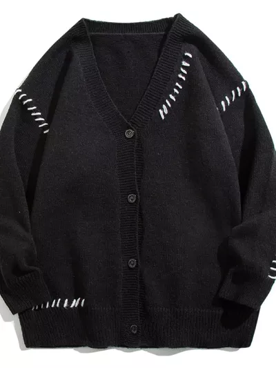 Men's Plus Size Ribbed Trim V-Neck Knit Cardigan