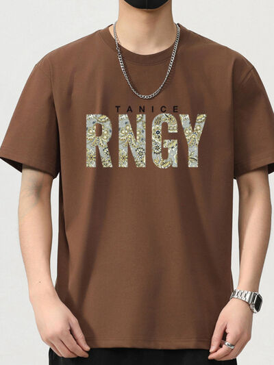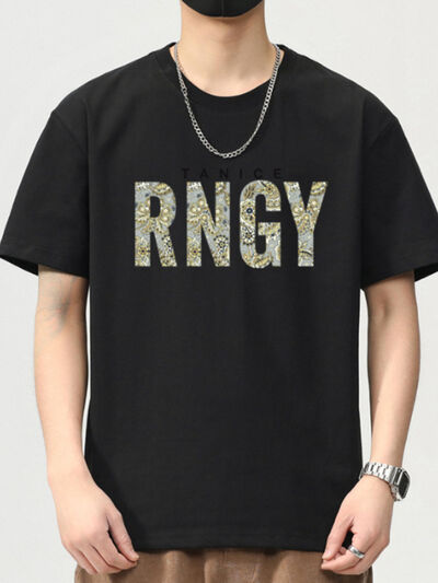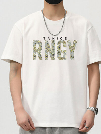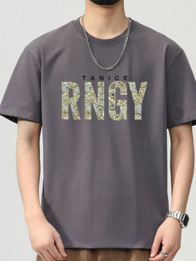 Men's Plus Size Round Neck Letter Graphic T-Shirt