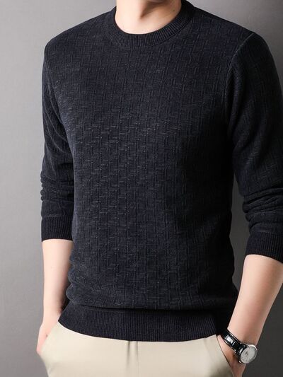 Men's Plus Size Round Neck Long Sleeve Knit Top