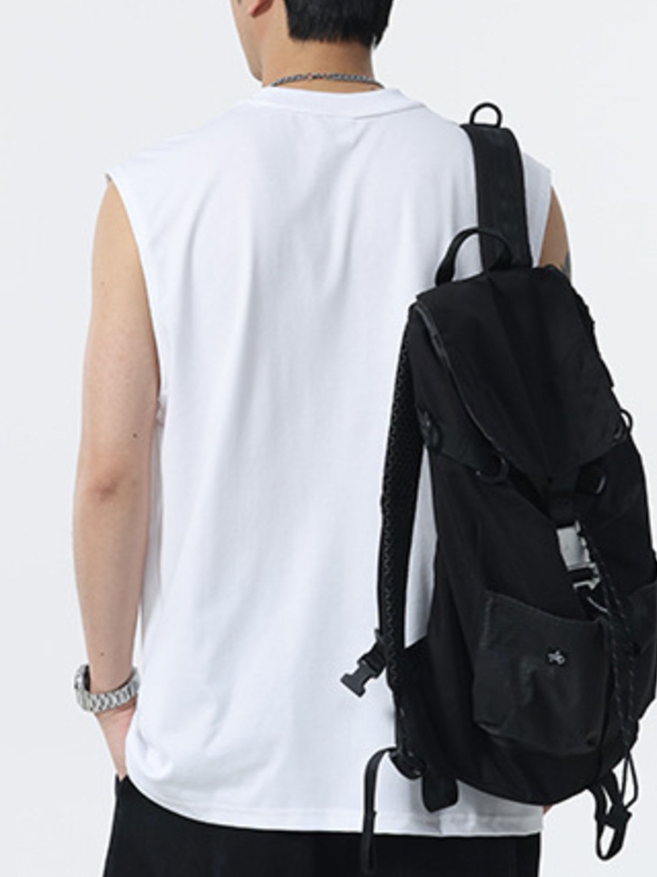 Men's Plus Size Round Neck Tank with Chest Pocket