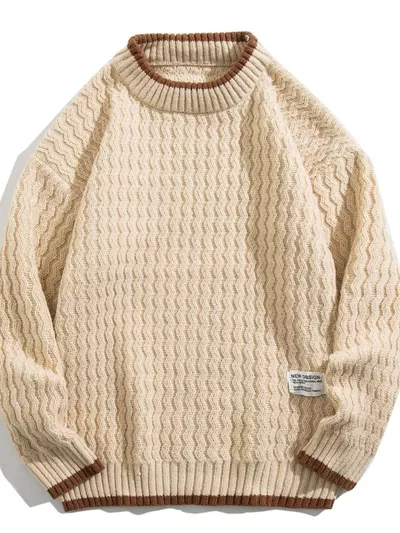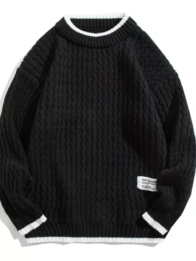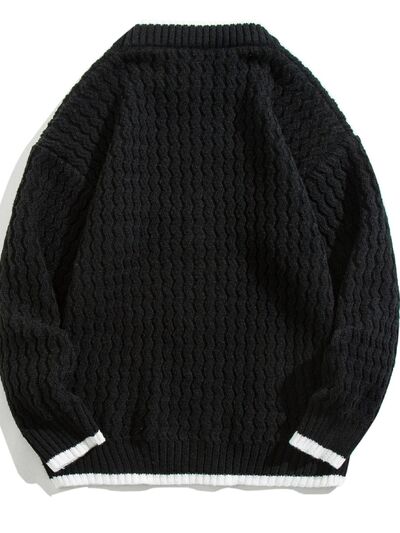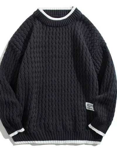Men's Plus Size Round Neck Textured Knit Sweater