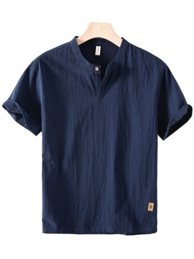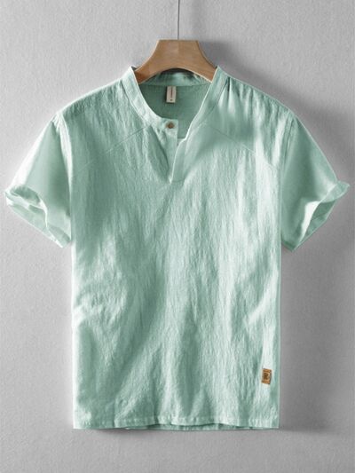 Men's Plus Size Short Sleeve Button Detail Blouse