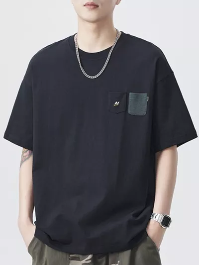 Men's Plus Size Short Sleeve Contrast Pocket T-Shirt