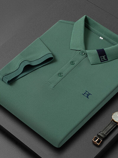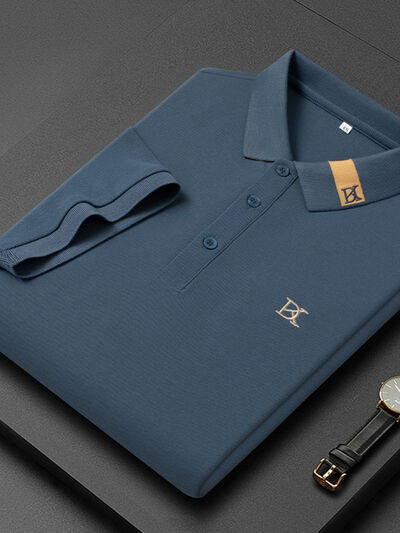 Men's Plus Size Short Sleeve Embroidered Detail Polo