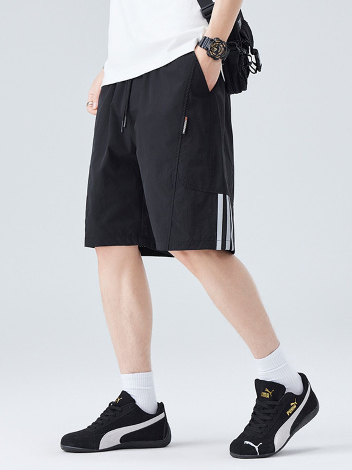 Men's Plus Size Side Striped Drawstring Shorts