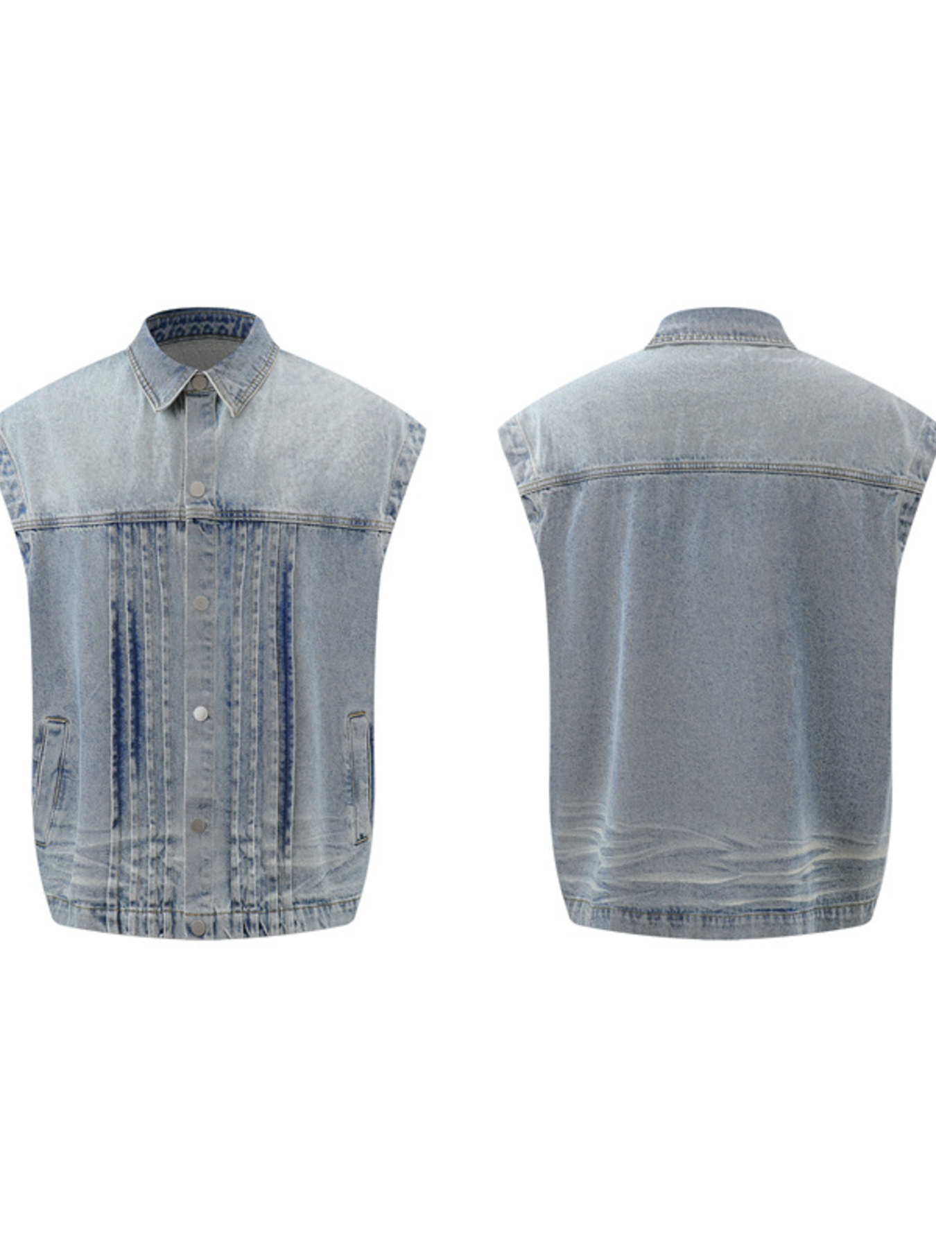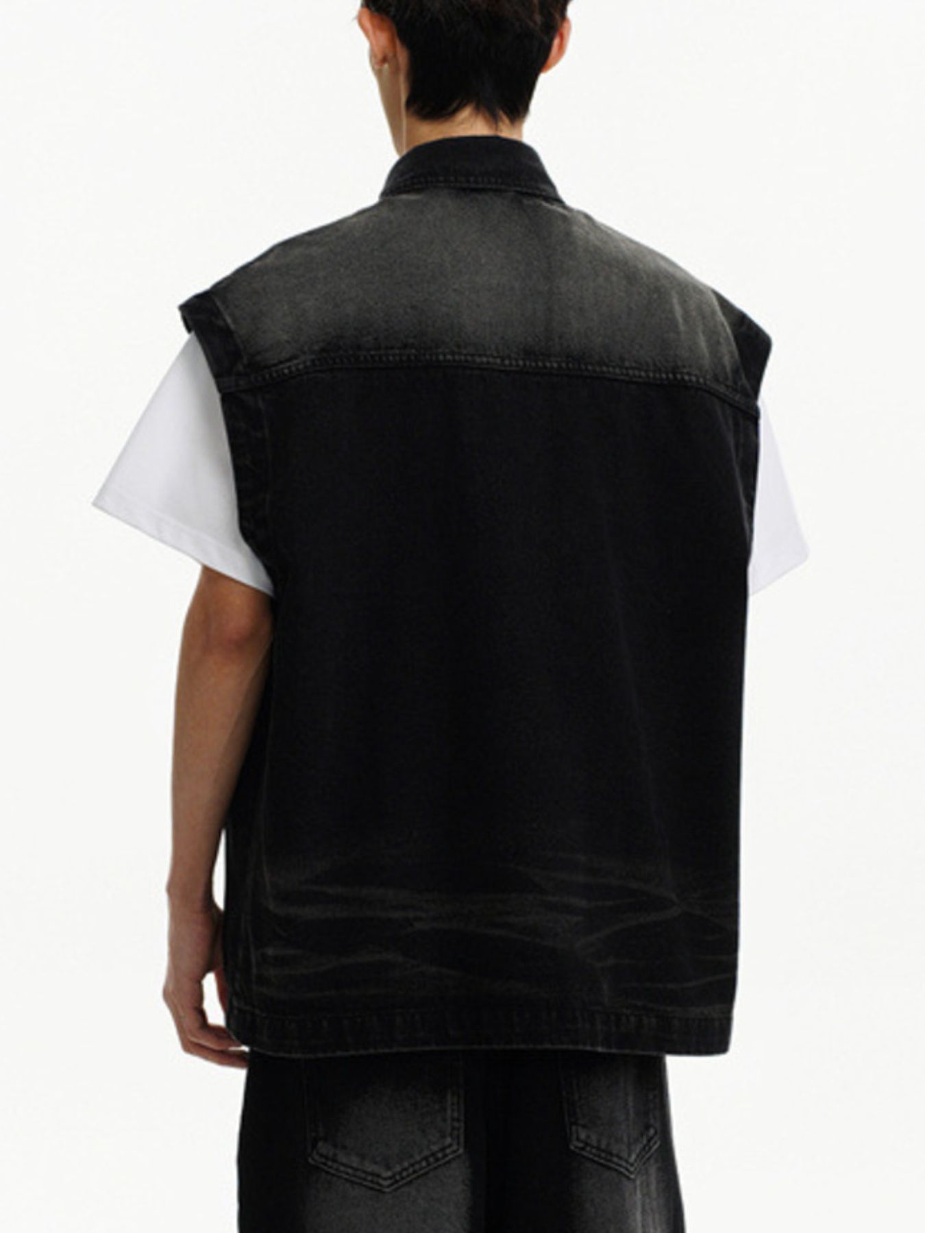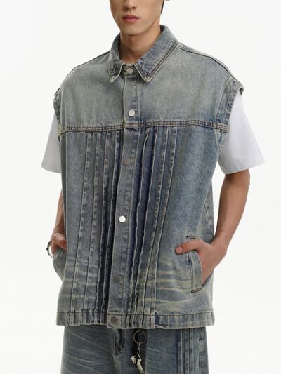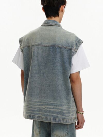 Men's Plus Size Sleeveless Vintage Washed Denim Jacket