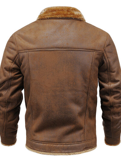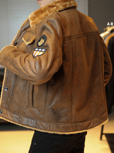Men's Plus Size Snap Down Fur Collar Jacket