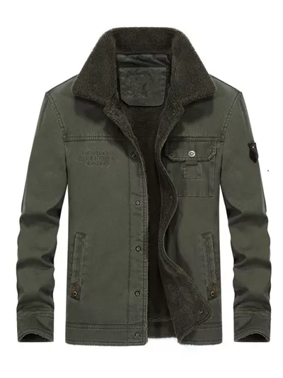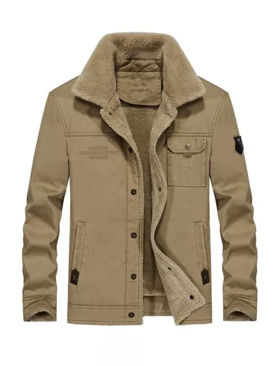 Men's Plus Size Solid Color Sherpa Lined Jacket