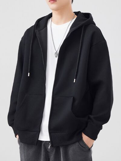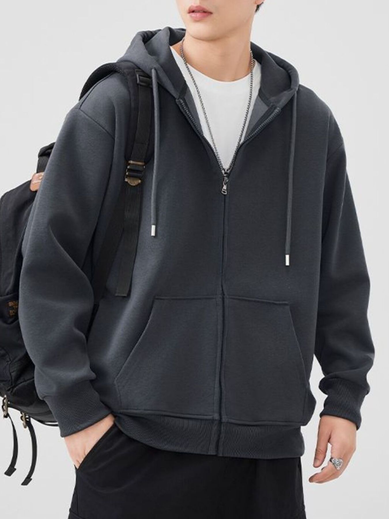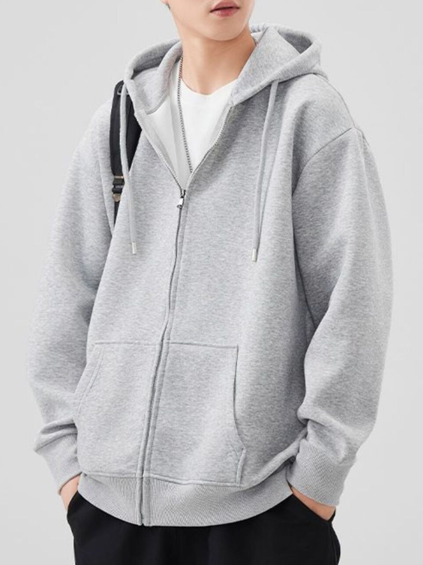 Men's Plus Size Solid Color Zip-Up Hoodie