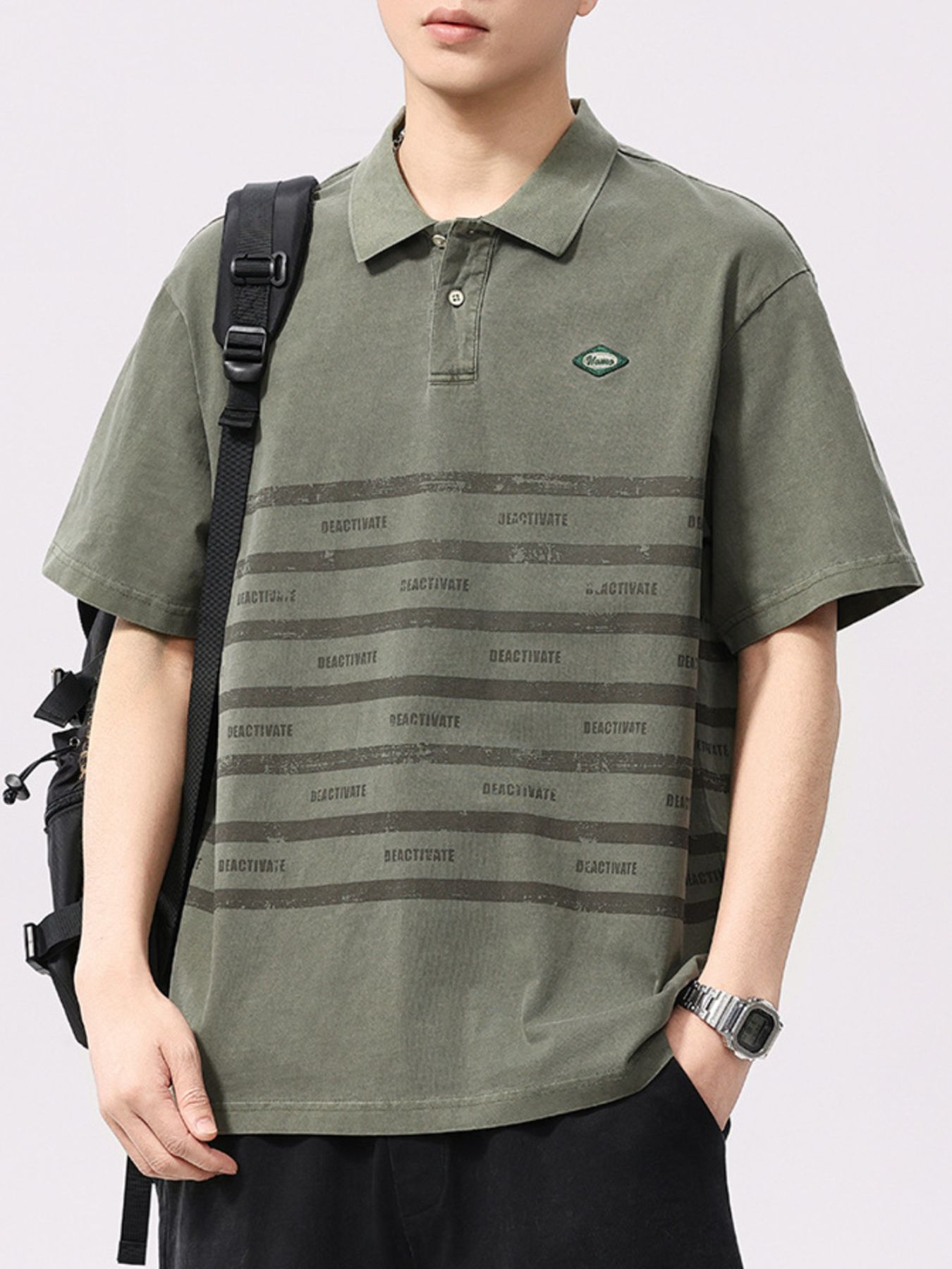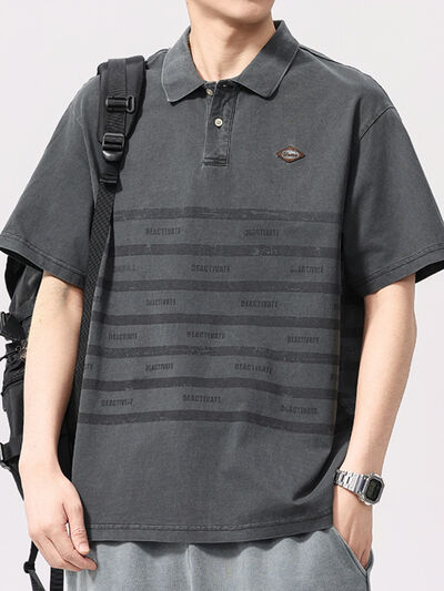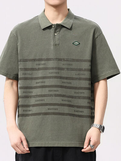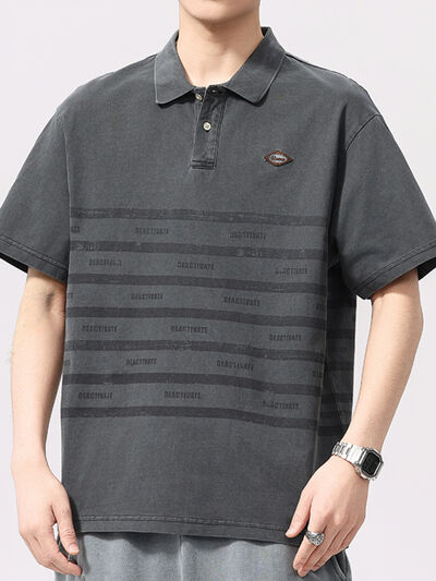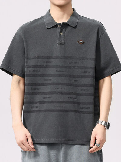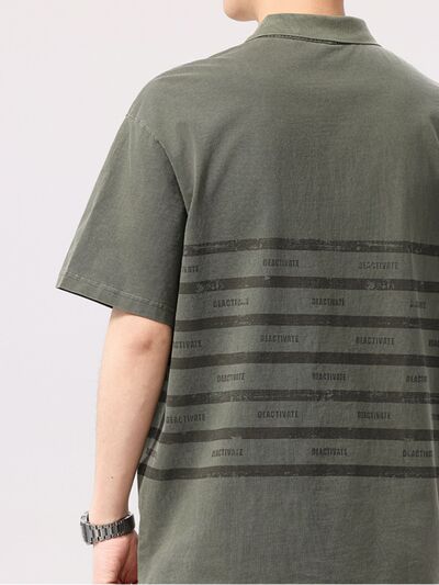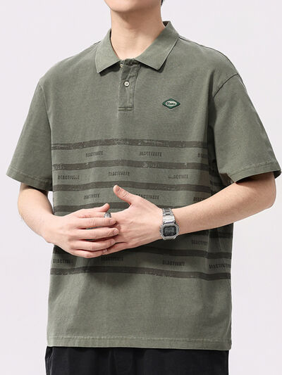 Men's Plus Size Striped Button Detail Half Sleeve Polo