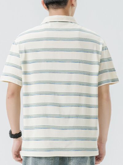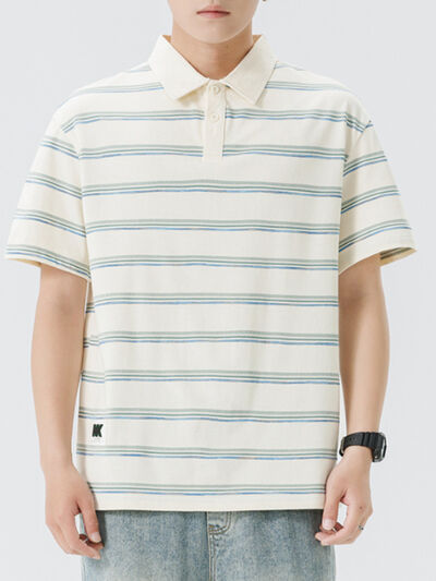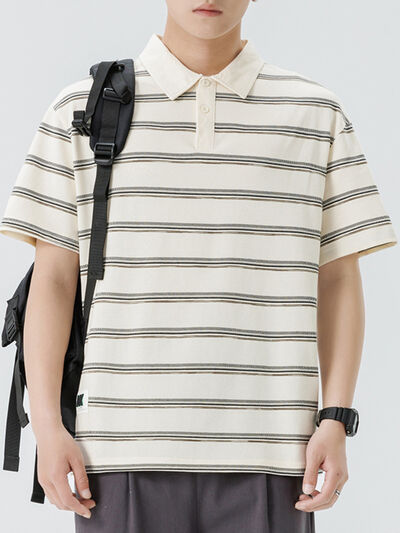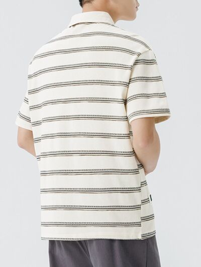 Men's Plus Size Striped Button Detail Short Sleeve Polo