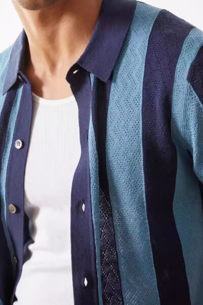 Men's Plus Size Striped Button Down Short Sleeve Shirt