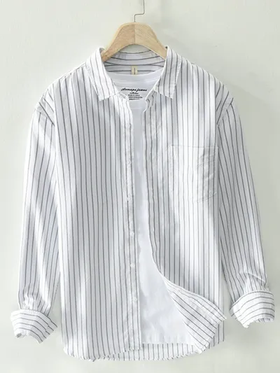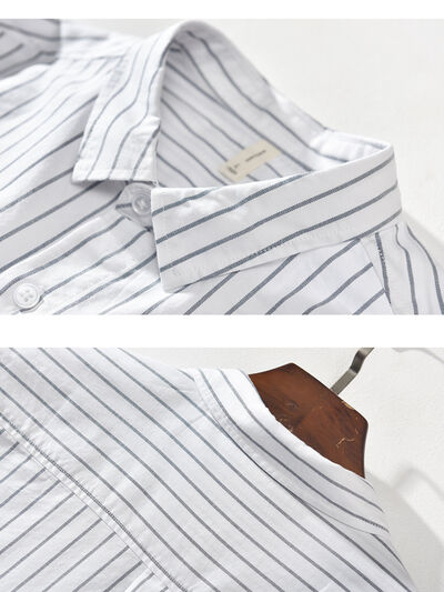 Men's Plus Size Striped Button Up Long Sleeve Shirt
