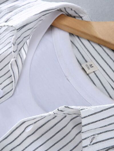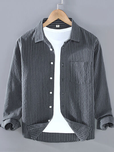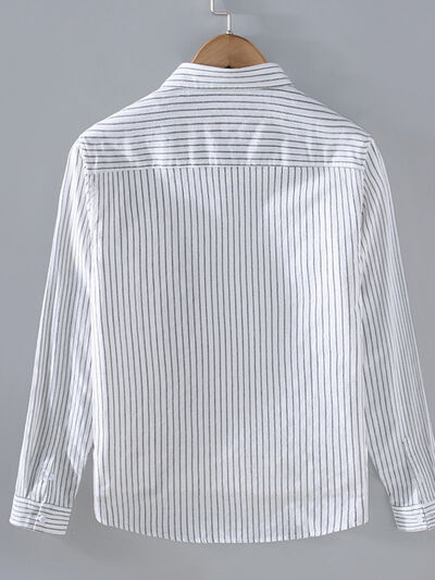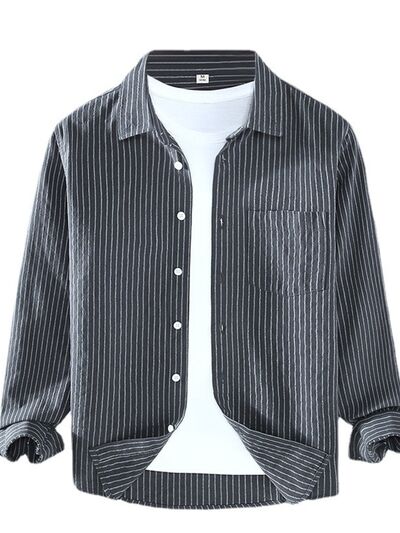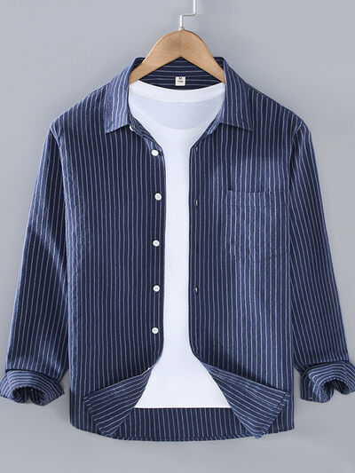 Men's Plus Size Striped Button Up Long Sleeve Shirt