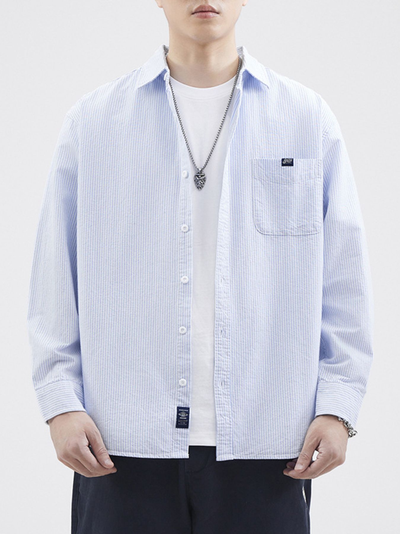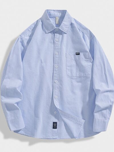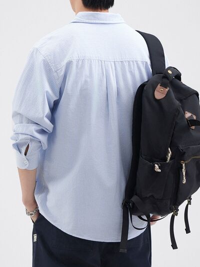 Men's Plus Size Striped Button Up Long Sleeve Shirt