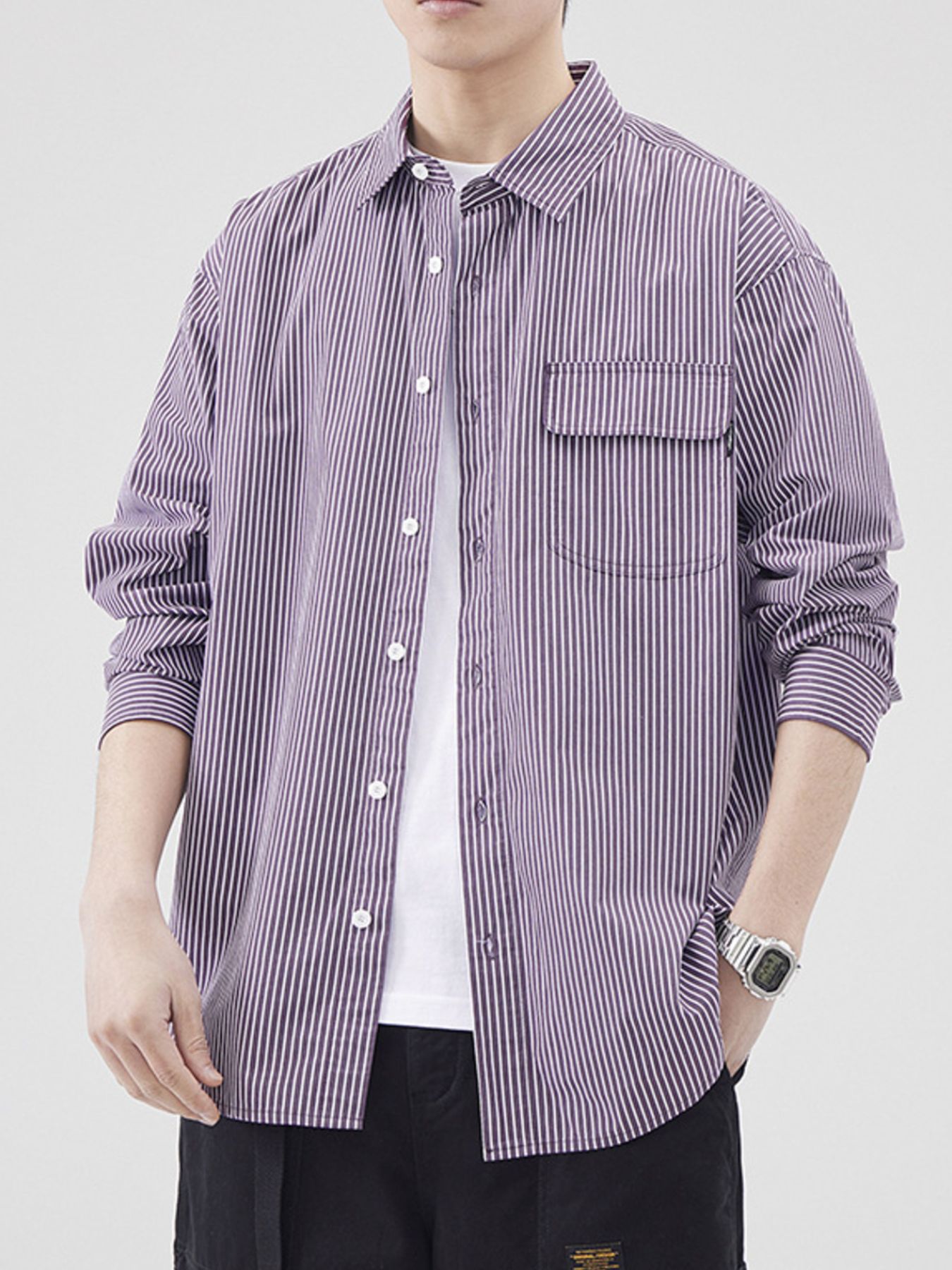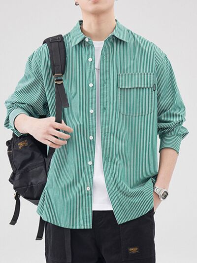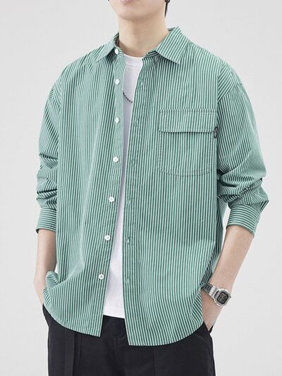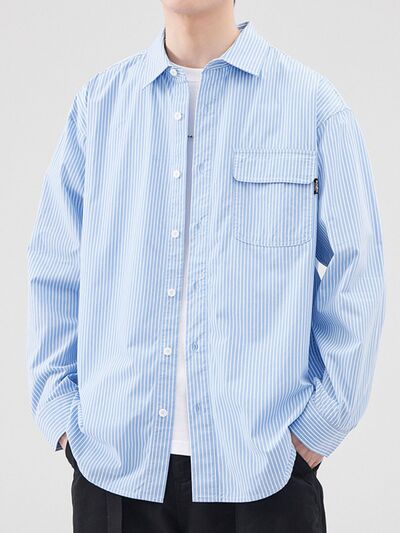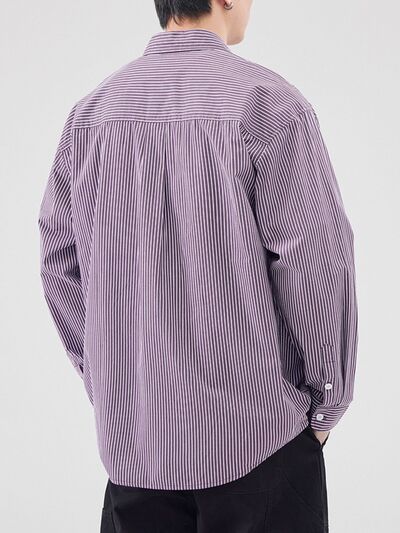 Men's Plus Size Striped Button Up Long Sleeve Shirt