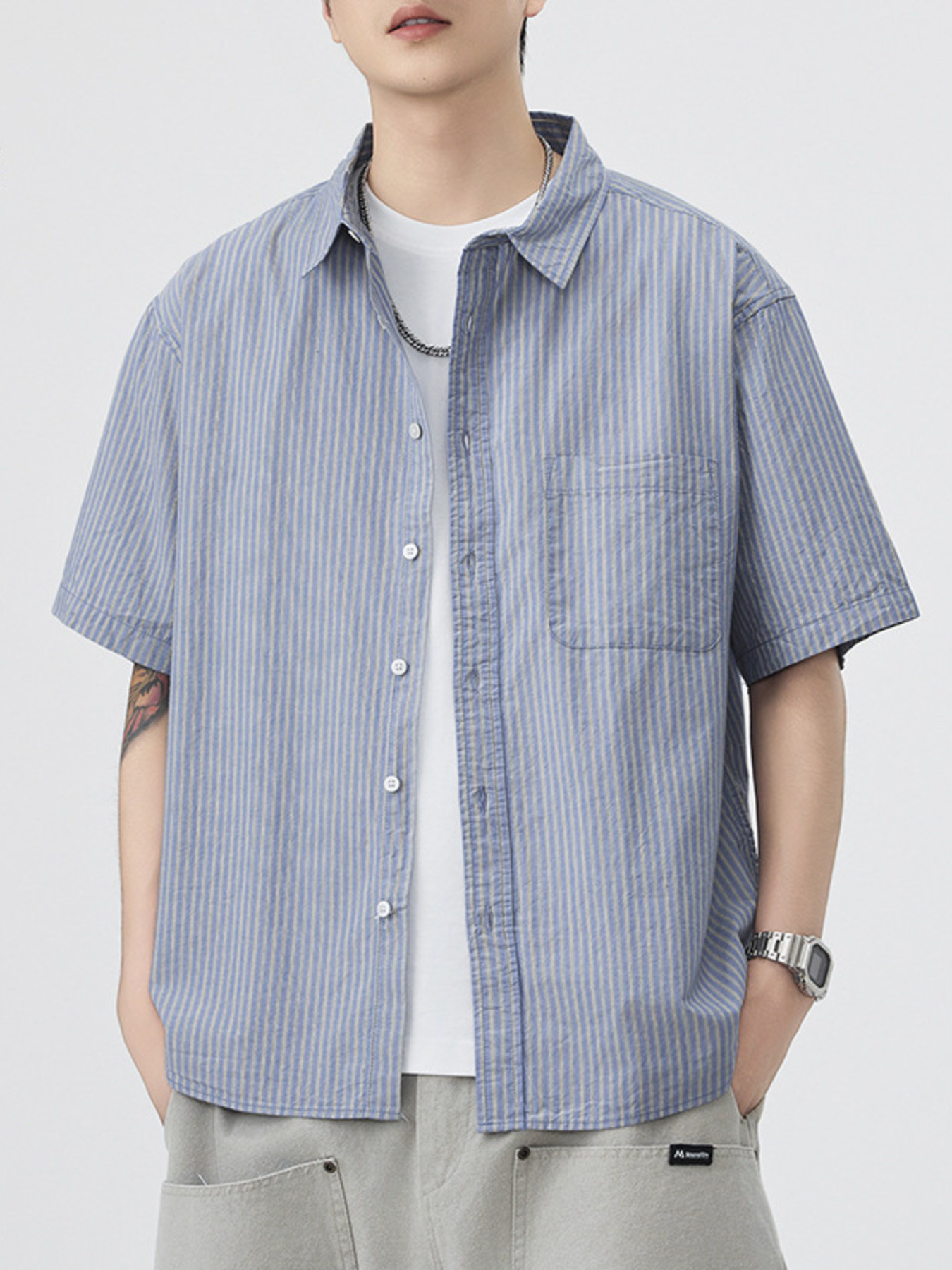 Men's Plus Size Striped Button Up Short Sleeve Shirt