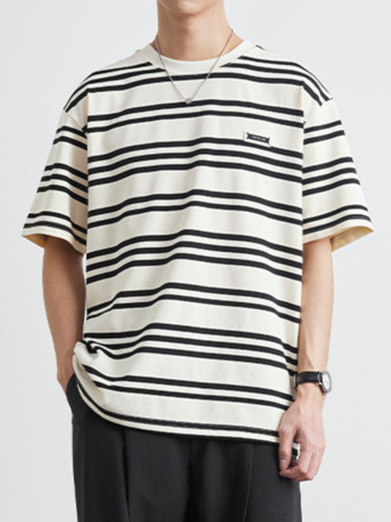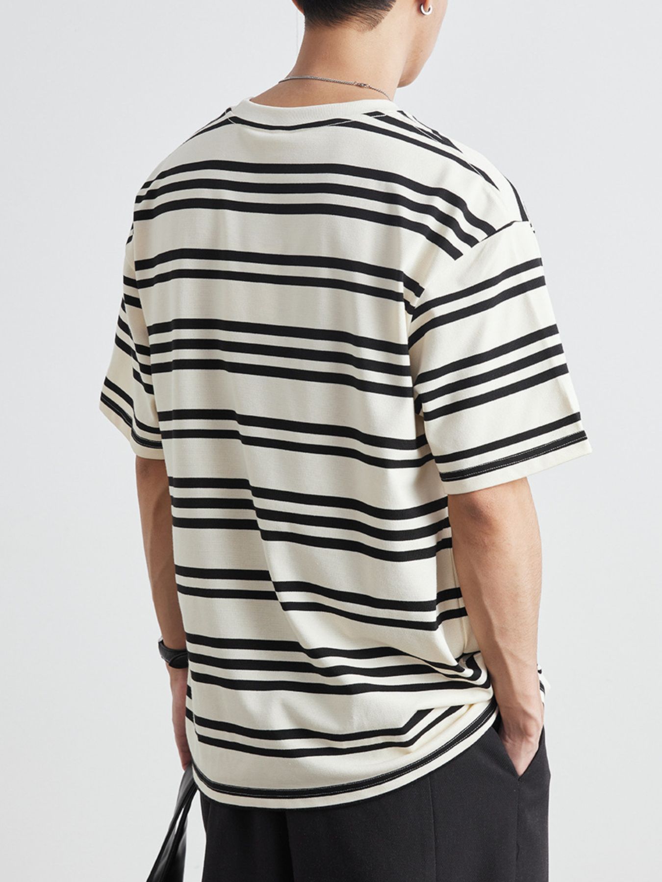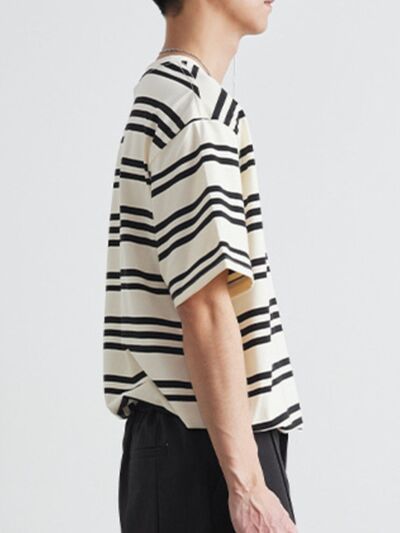 Men's Plus Size Striped Casual Round Neck T-Shirt