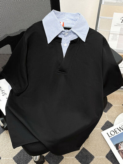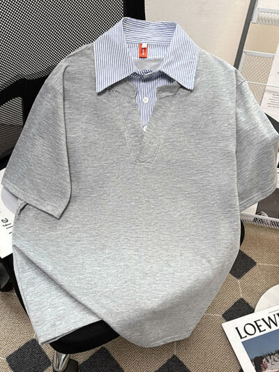 Men's Plus Size Striped Collar Half Sleeve Polo