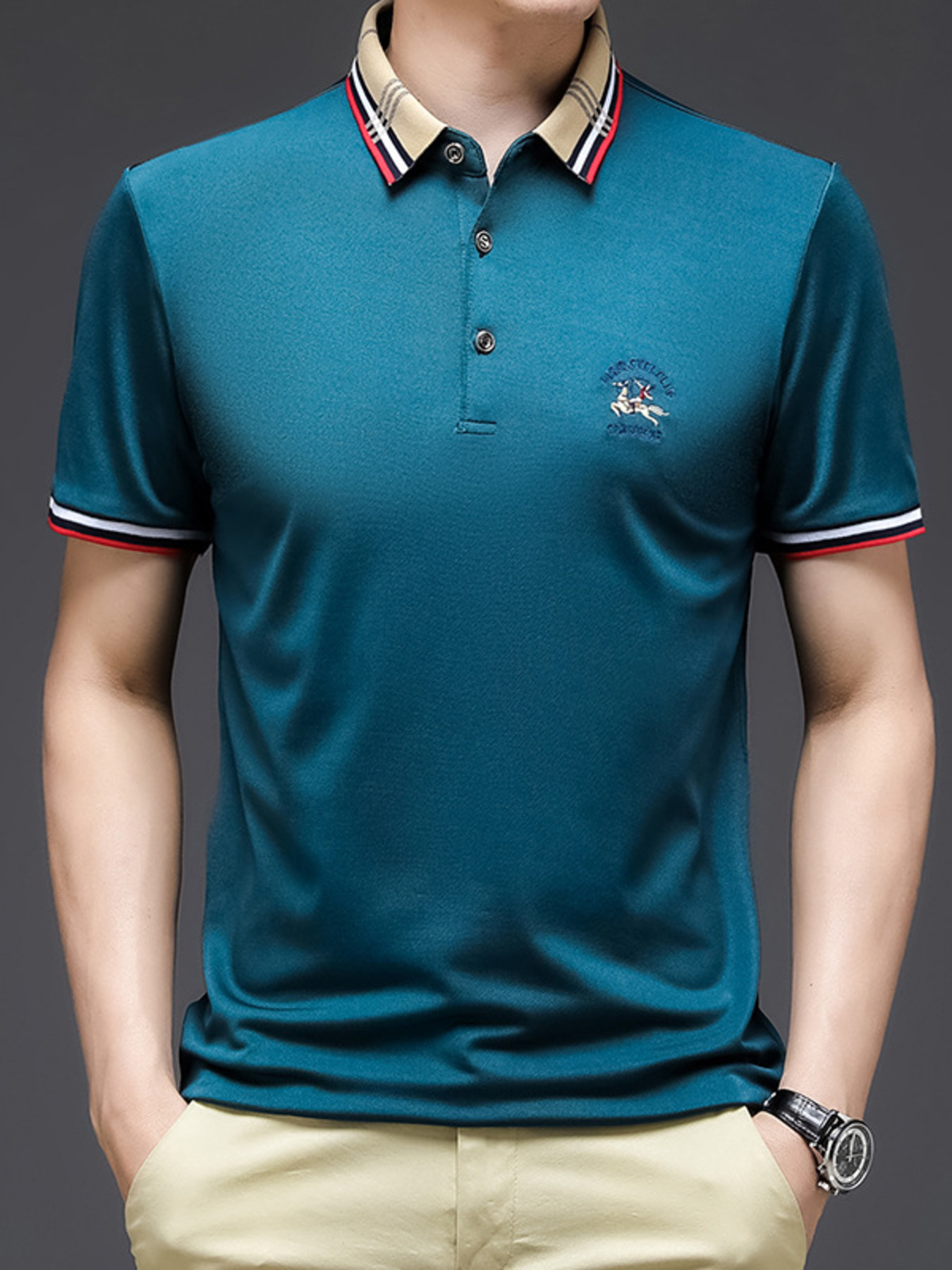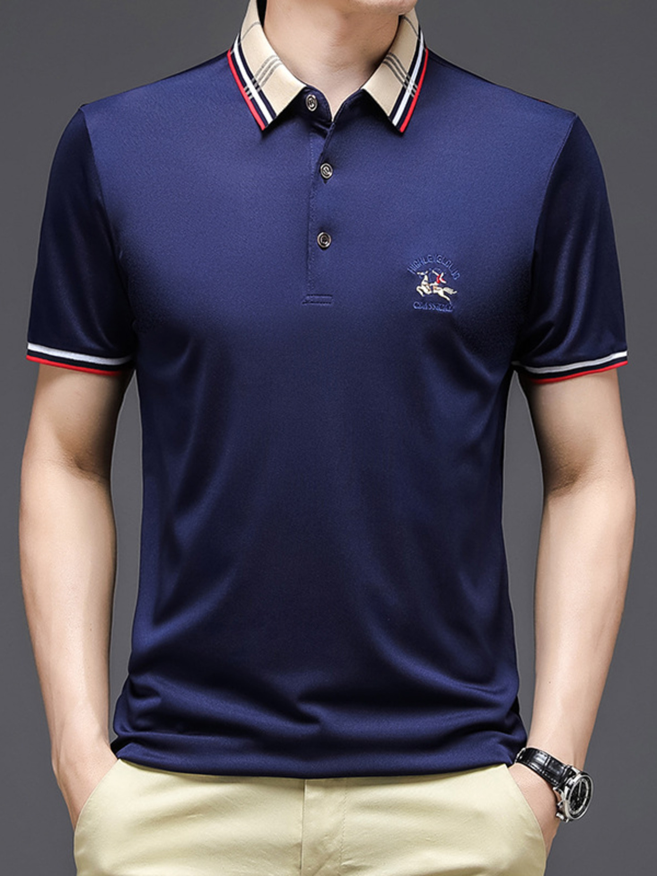 Men's Plus Size Striped Collar Short Sleeve Polo Shirt