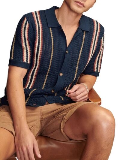 Men's Plus Size Striped Collared Neck Short Sleeve Shirt