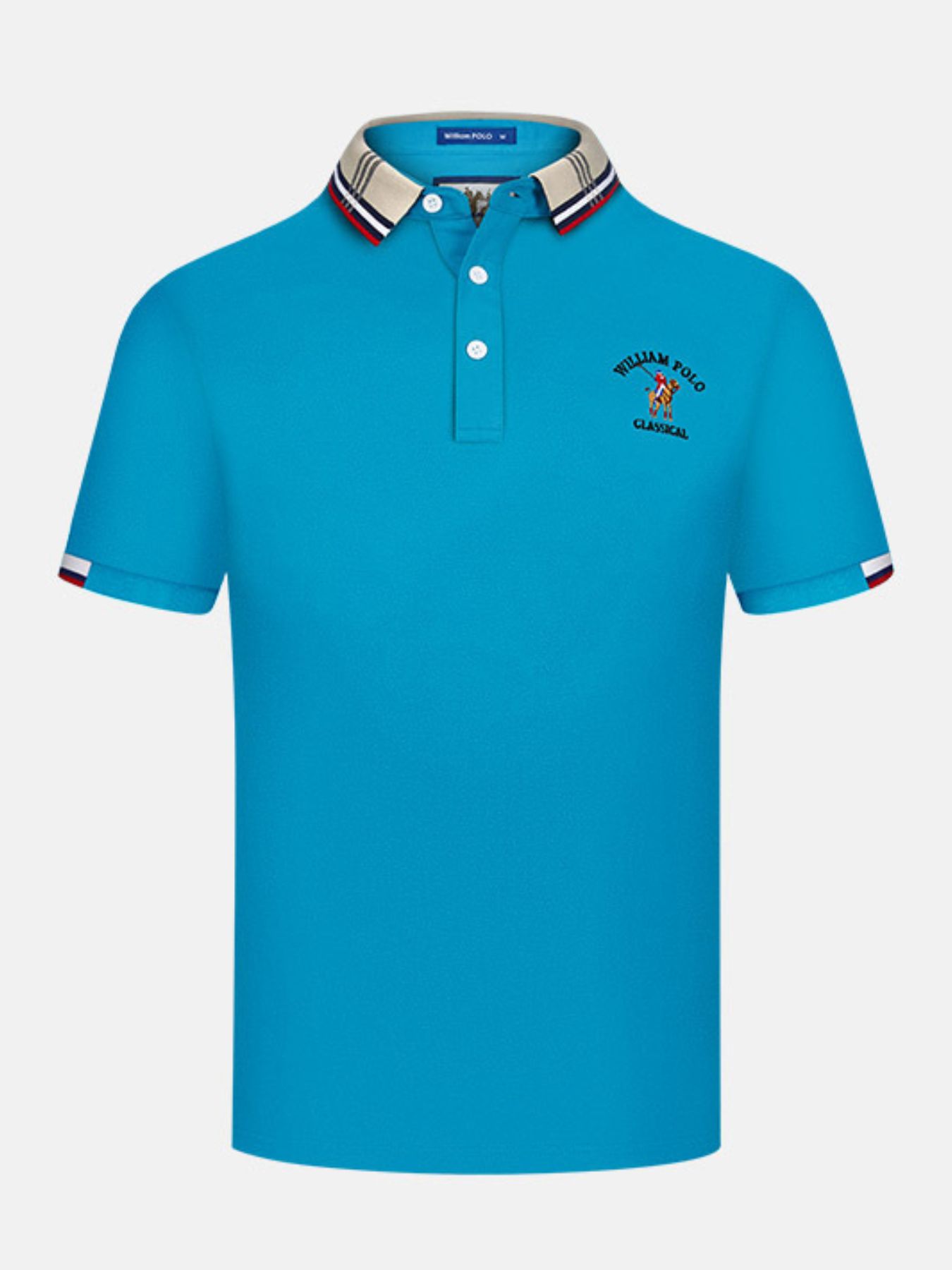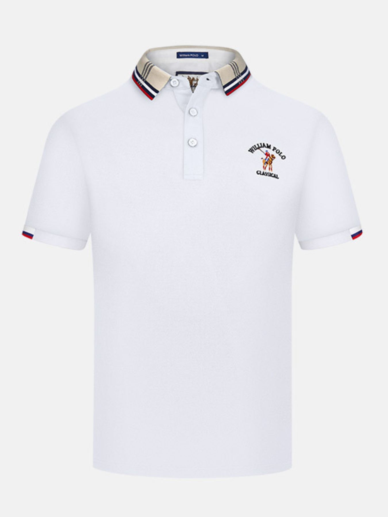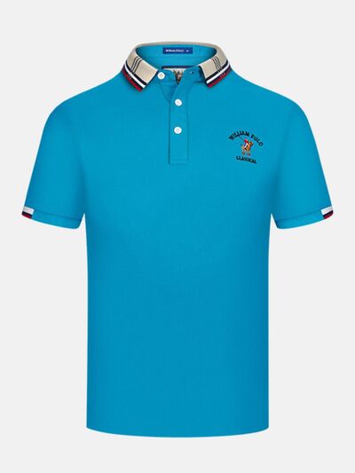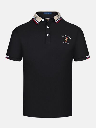 Men's Plus Size Striped Collared Short Sleeve Embroidered Polo