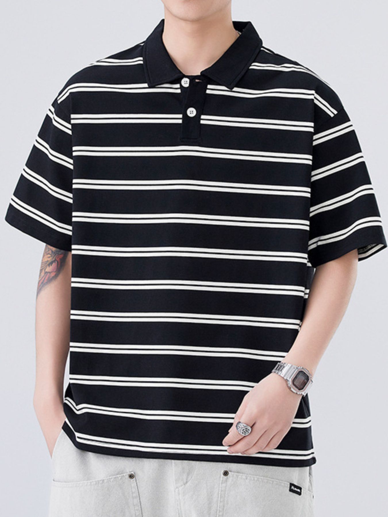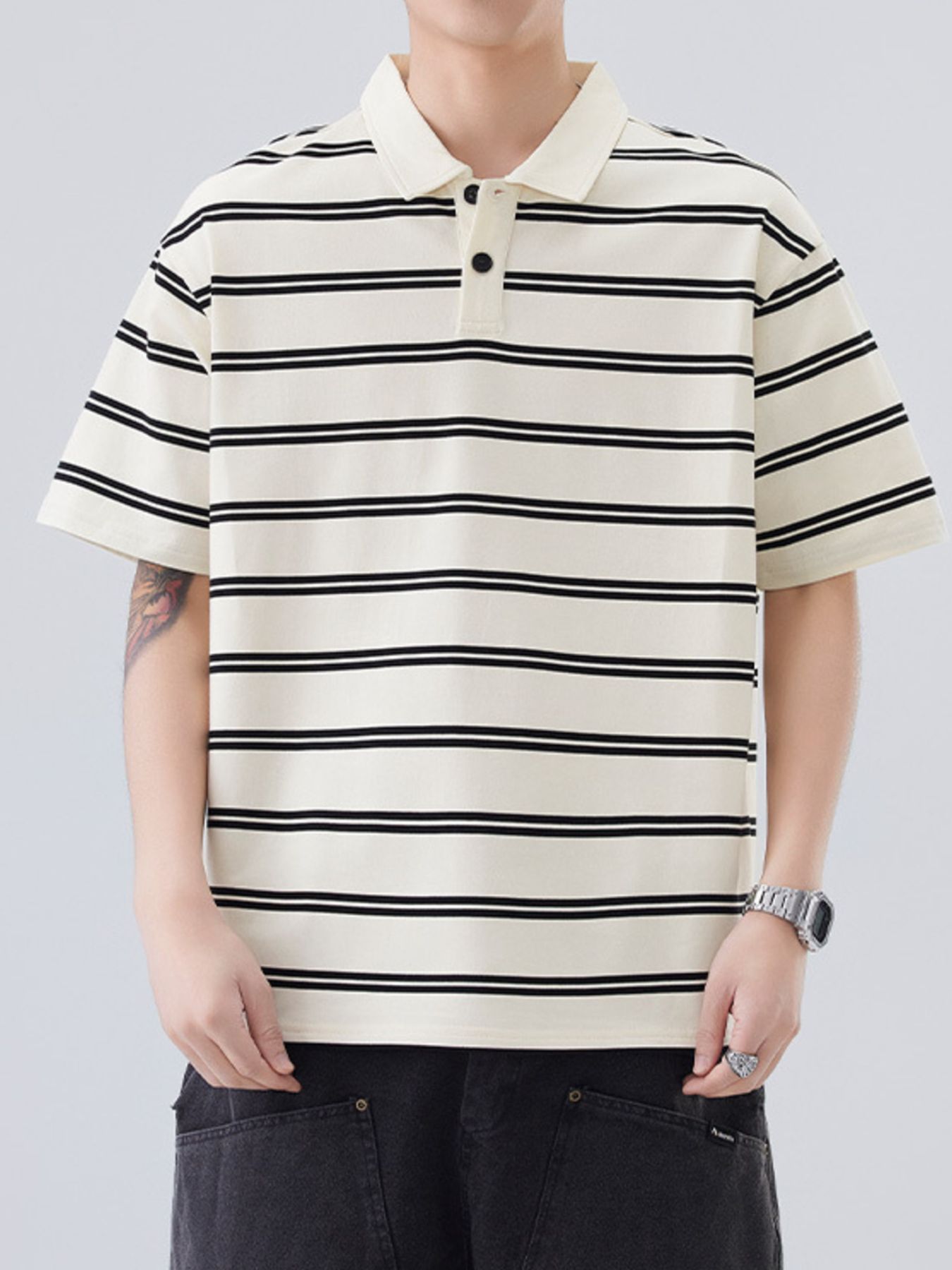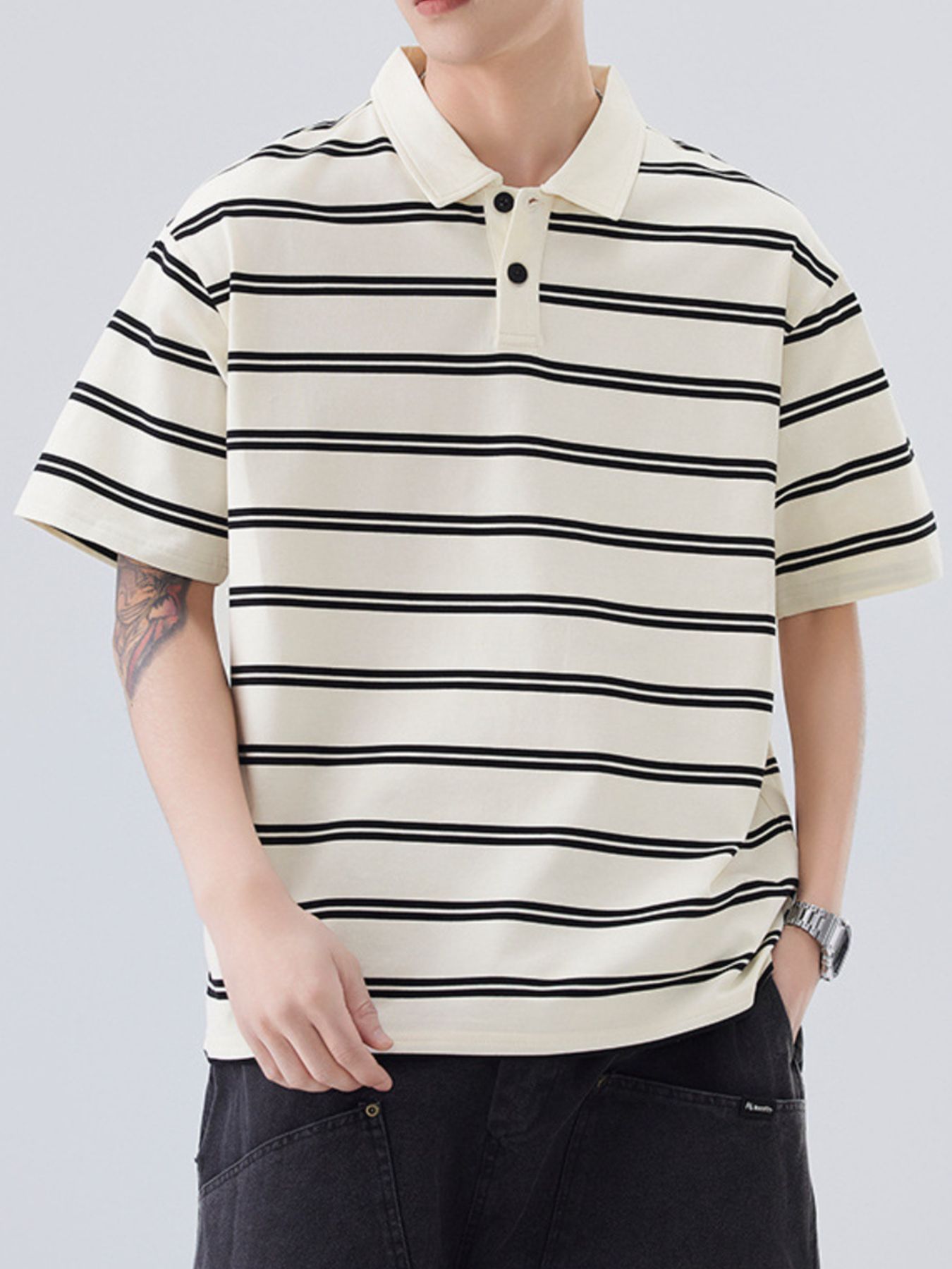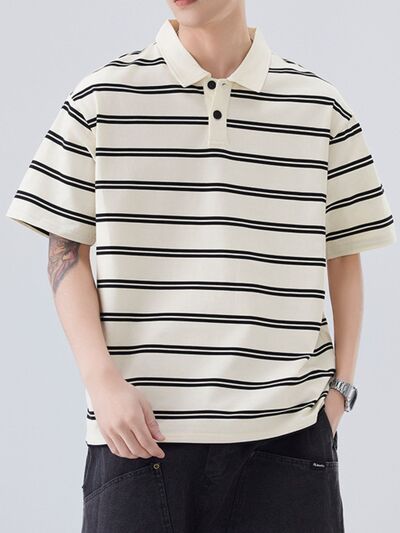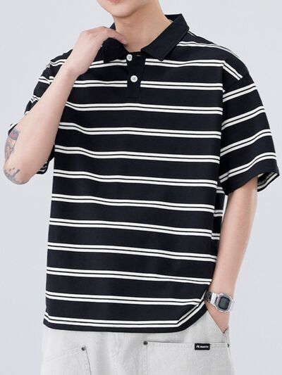 Men's Plus Size Striped Half Sleeve Polo