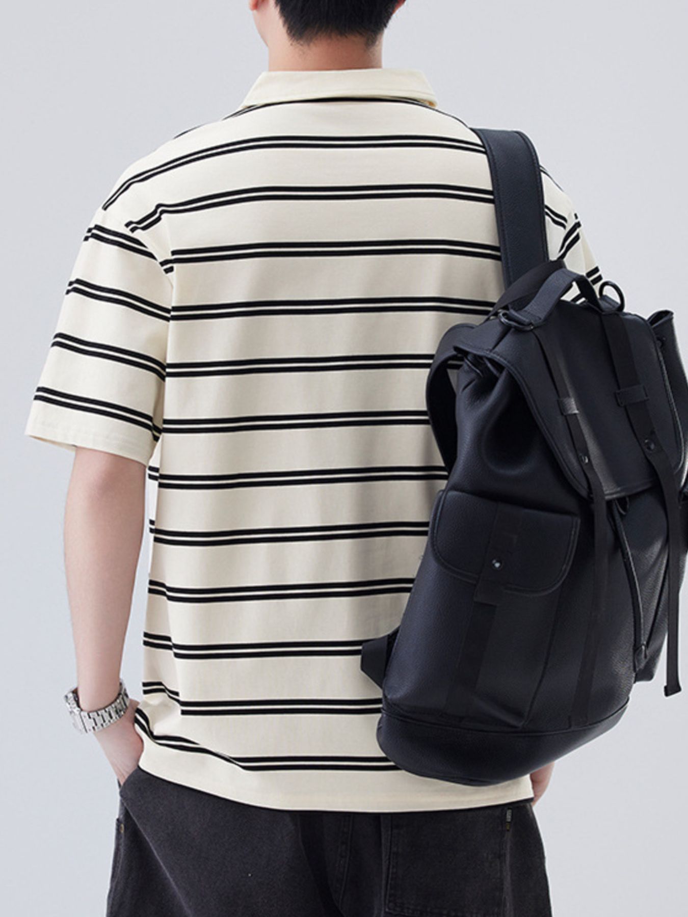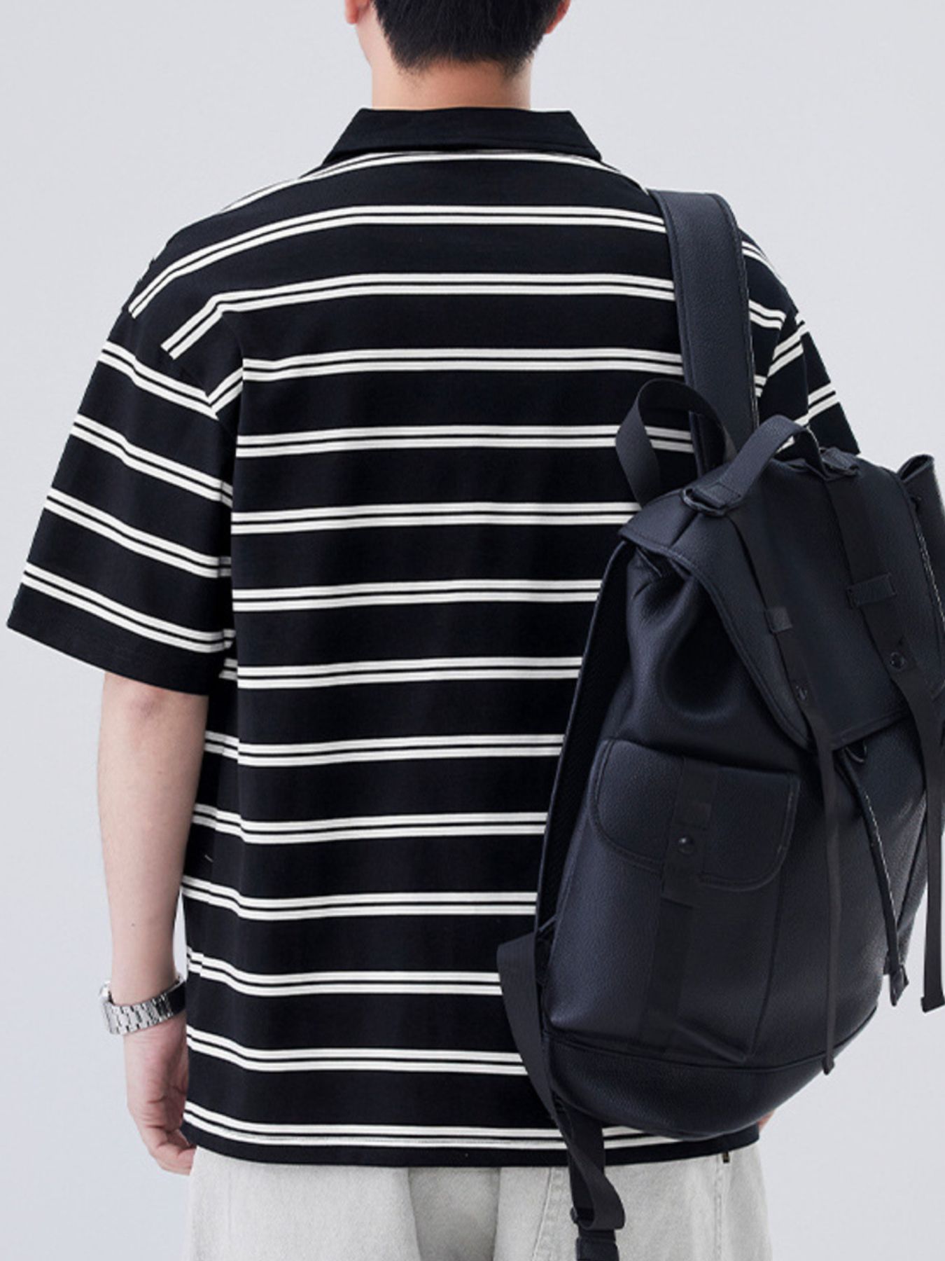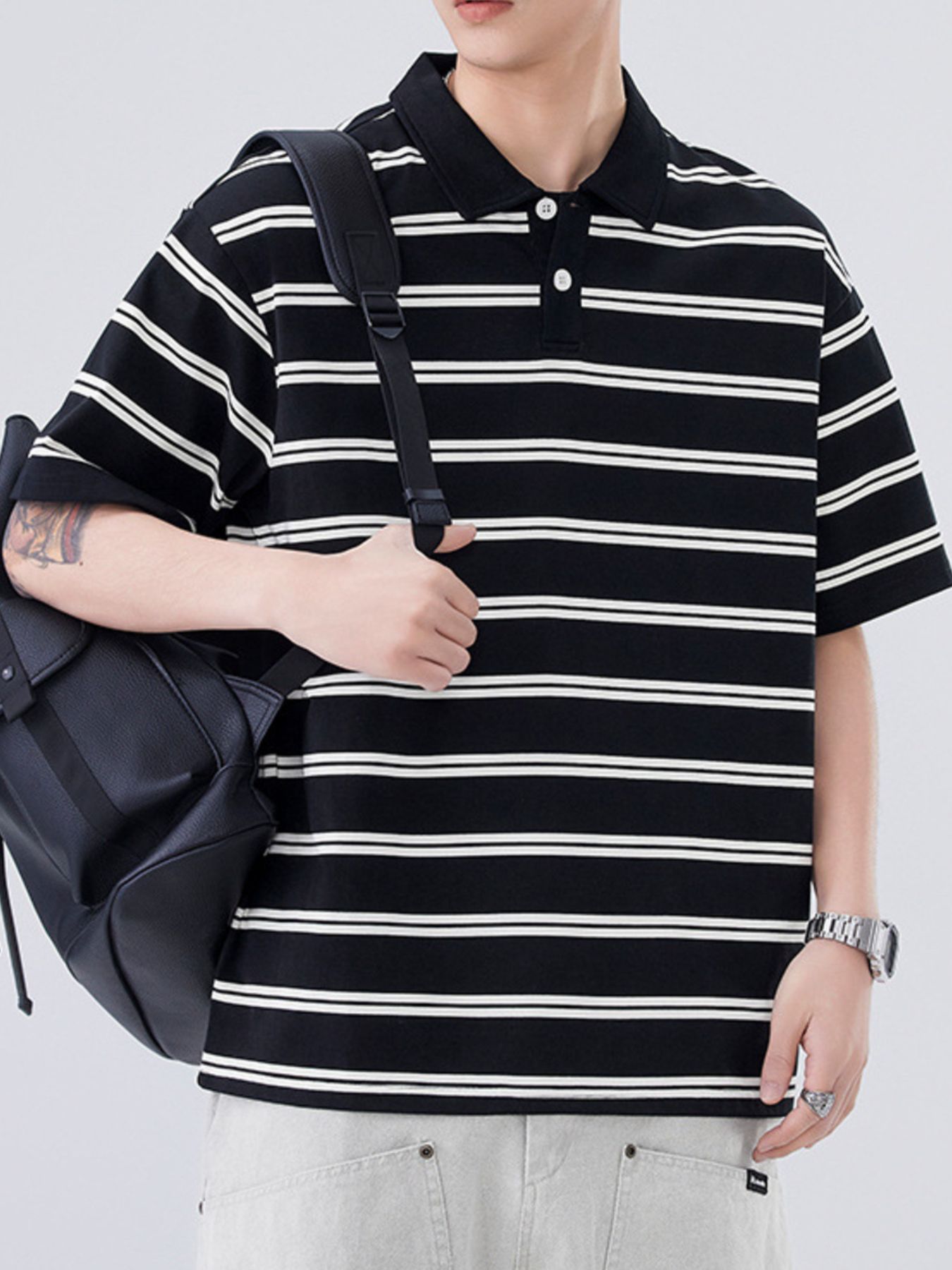 Men's Plus Size Striped Half Sleeve Polo