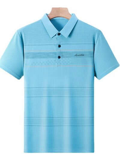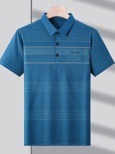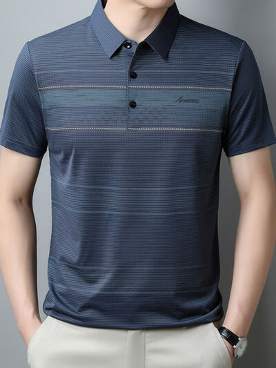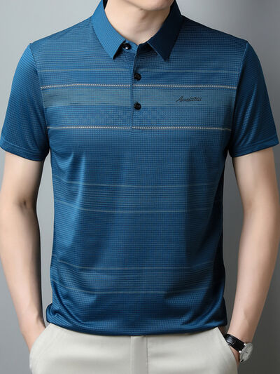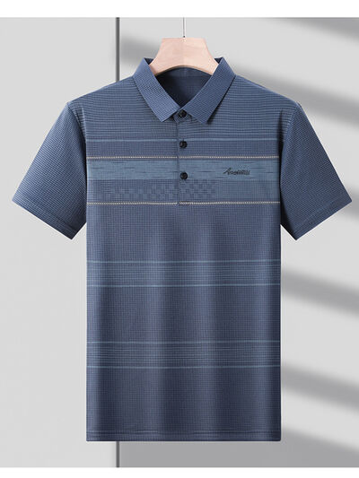 Men's Plus Size Striped Quick-Dry Short Sleeve Polo Shirt