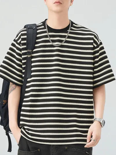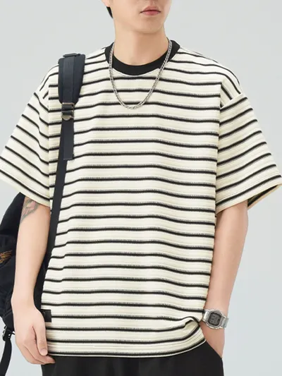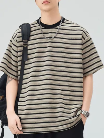 Men's Plus Size Striped Round Neck Oversized T-Shirt