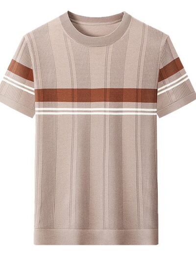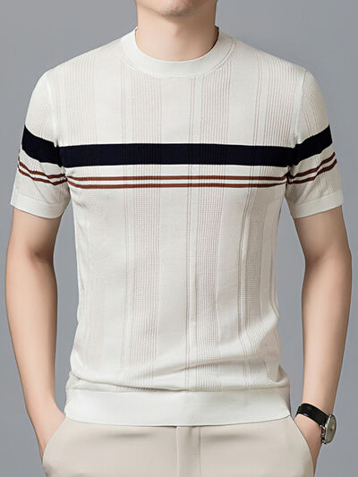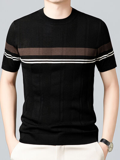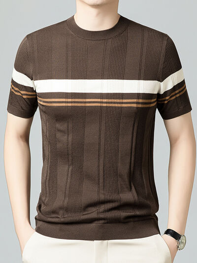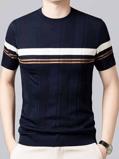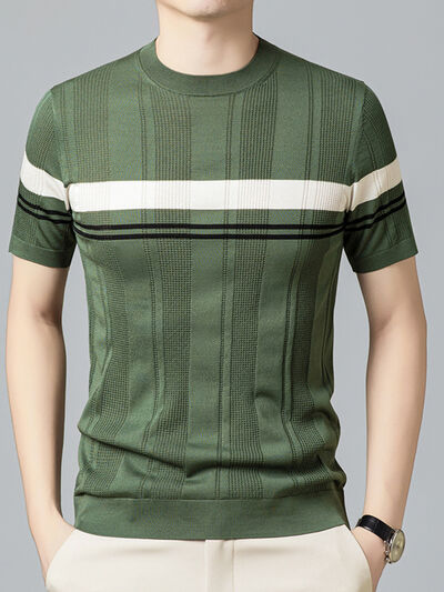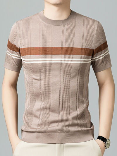 Men's Plus Size Striped Round Neck Short Sleeve T-Shirt