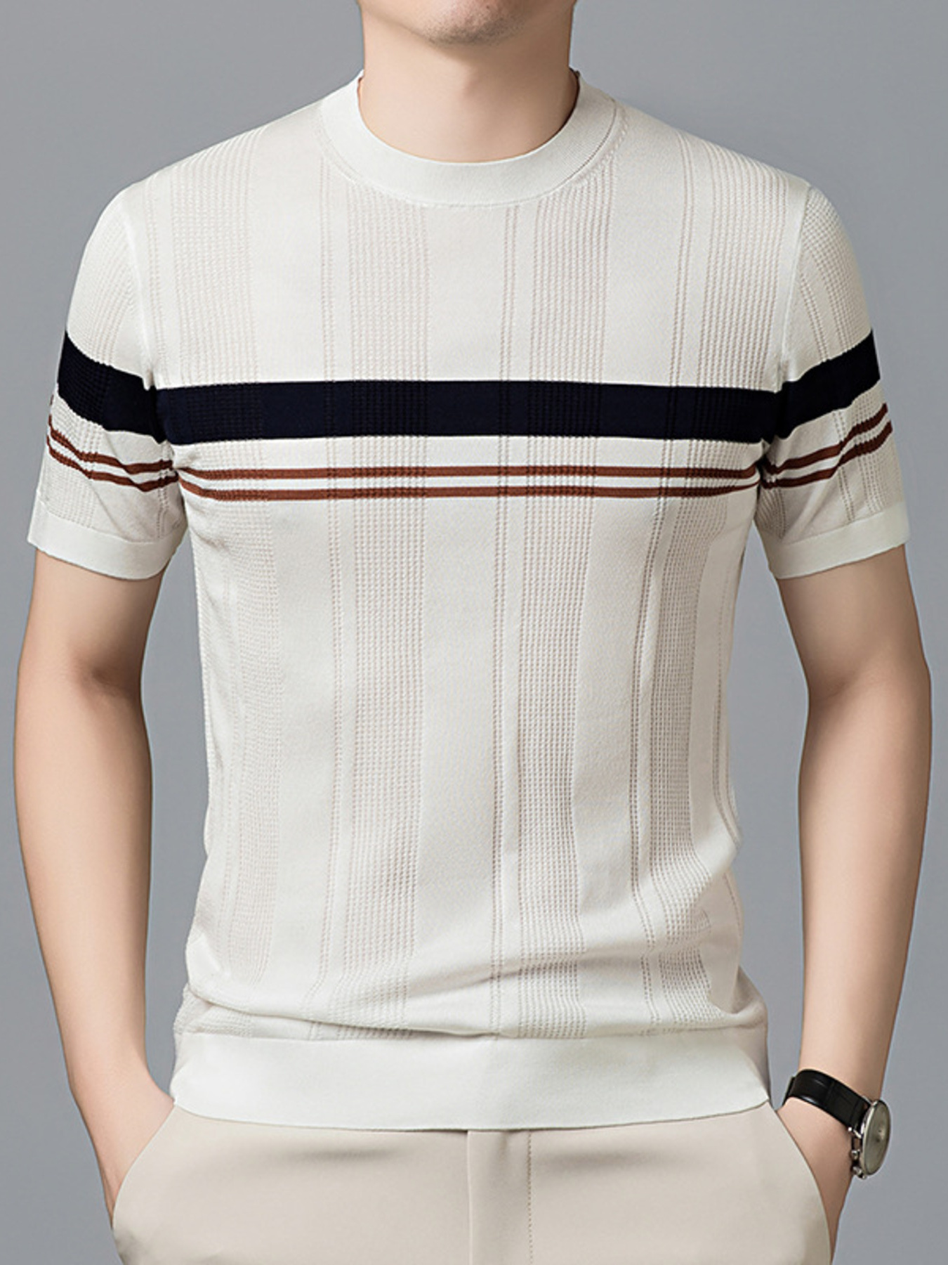 Features:Basic style,Ribbed,Contrast Stitching