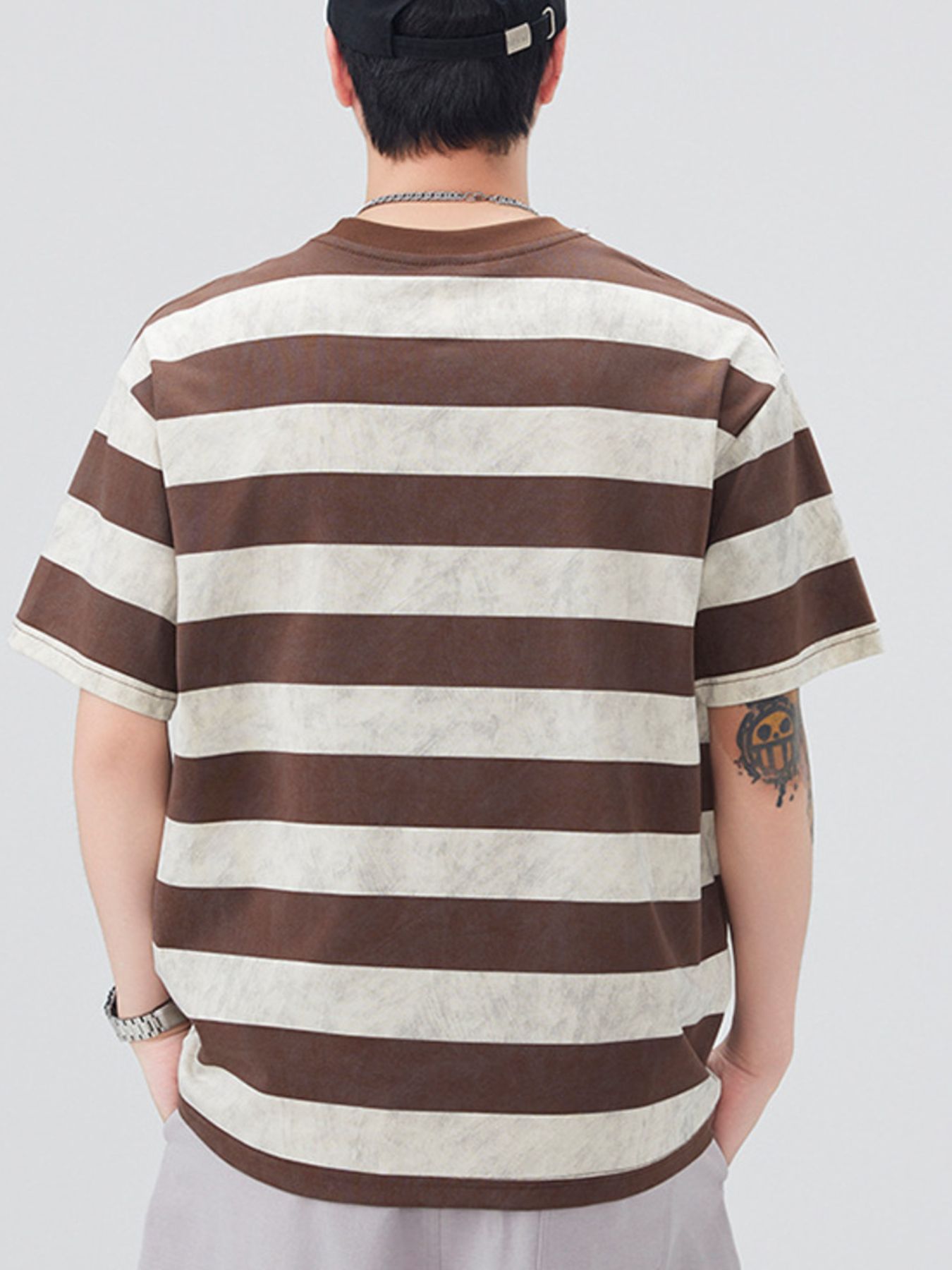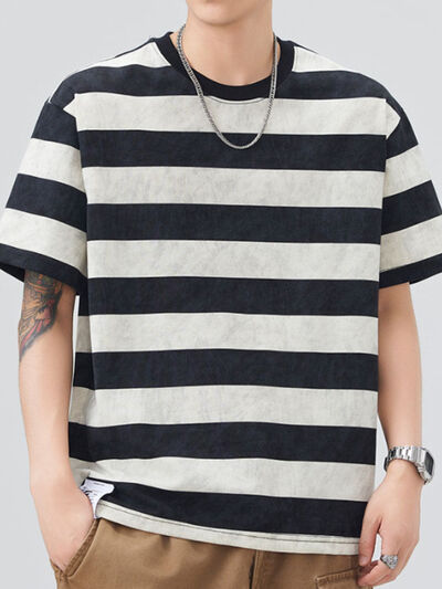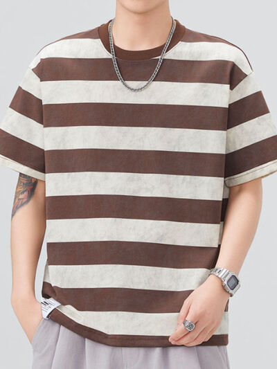 Men's Plus Size Striped Round Neck Short Sleeve T-Shirt